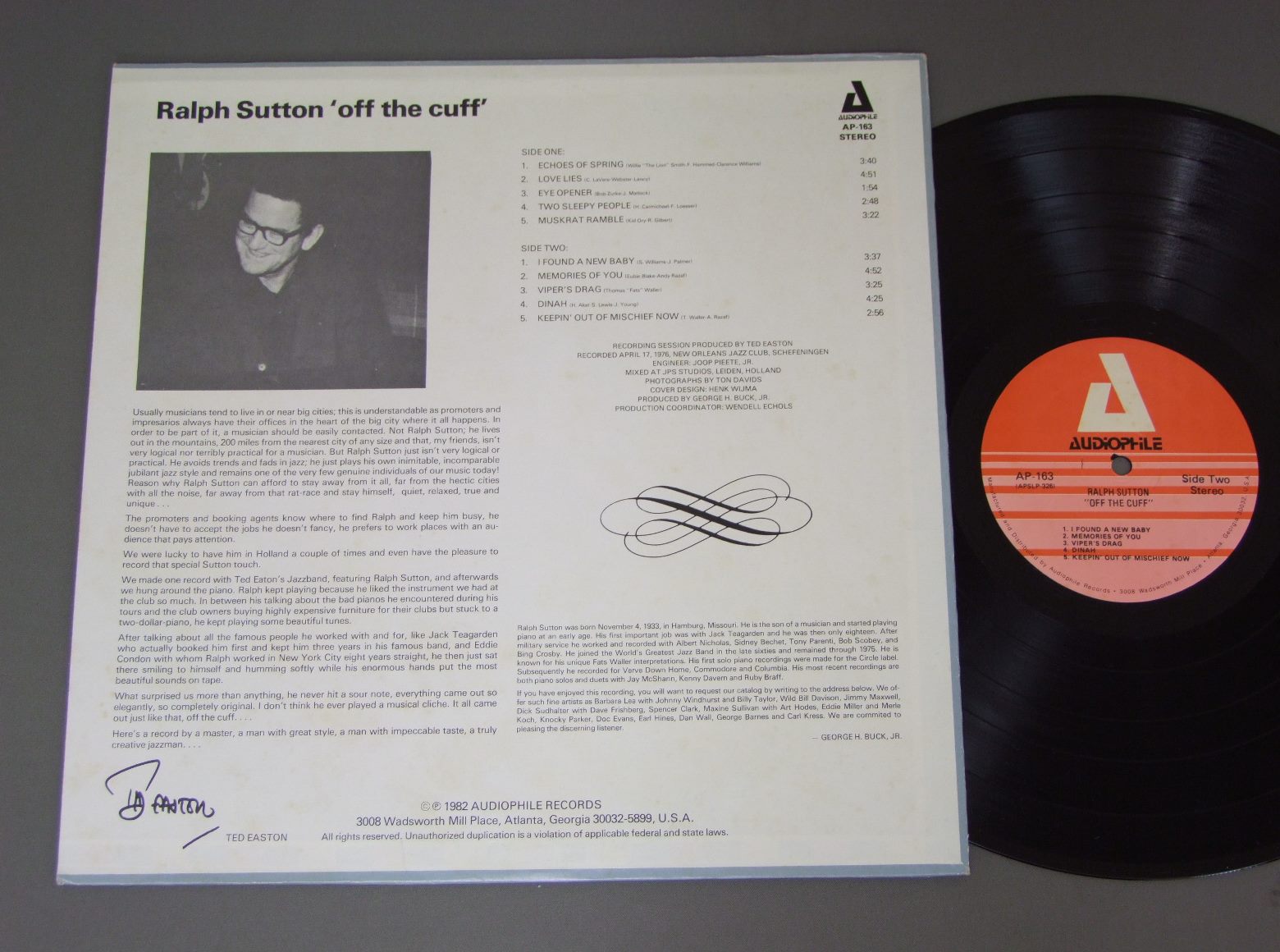 RALPH SUTTON/OFF THE CUFFサイン付 AP163 製造国:米国盤 / Media:LP外観:EX-盤の状態:EX 価格(税込):¥1,760(売約済) 送料 7inch:定形外郵便 360円~LP:定形外郵便 660円~送料は、注文の最終画面で確認頂けます。 > > RALPH SUTTON/OFF THE CUFF 外観 (EX-)特記事項:表裏共に薄いシミ有。外観EX-の共通説明:ダメージ軽度~多少。 中古品としては普通の状態。シミ、ヨゴレ、スレなど軽く~多少。 盤の状態 (EX)特記事項:薄いスリキズ・スレ軽くある感じ。一見してきれいな印象です。盤EXの共通説明:盤面のスリキズが薄いものが少し~軽度 音に出そうなものは無いように見える(軽微なソフトティック音は除く)。 Tweet それぞれの画像をクリックすると、大きい写真が見られます こちらの商品もお勧めです 2,640円 ERIC DOLPHY / GREAT CONCERT OF ERIC DOLPHY 770円 SHARKEY BONANO & HIS SHARKS OF RHYTHM / 1936-1937 1,210円 PUNCH MILLER-MUTT CAREY / JAZZ NEW ORLEANS (RALPH SUTTON AUTOGRAPHED)RALPH SUTTONサイン付 770円 DOC EVANS / DOC EVANS DIXIELAND CONCERT VOL2 440円 WORLD`S GREATEST JAZZ BAND / WORLD`S GREATEST JAZZ BAND PLAYS RODGERS & HART 990円 JOE HOWARD TRIO / JAZZ.HIGHWAY 20 1,320円 CLIFF JACKSON / HOT PIANO 1,650円 MONGO SANTAMARIA / MONGOMANIA