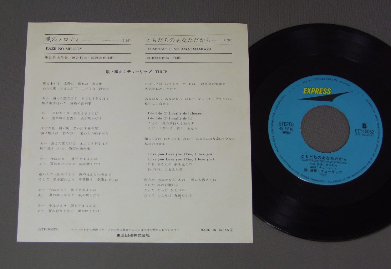 TULIPチューリップ/風のメロディ ETP10052 製造国:日本盤 / Media:7inch外観:EX盤の状態:EX+ 価格(税込):¥440(売約済) 送料 7inch:定形外郵便 360円~LP:定形外郵便 660円~送料は、注文の最終画面で確認頂けます。 > > TULIP/ 外観 (EX)特記事項:特記なし。外観EXの共通説明:ダメージが限定的。中古品としては保存状態がよい方。シミ、ヨゴレ、スレ 少し~軽度。 盤の状態 (EX+)特記事項:極薄いスリキズ・スレ少し。一見してきれいな状態です。盤EX+の共通説明:盤面の極薄いスリキズ、スレ少し程度 音に出そうなものは無いように見える(極軽微なソフトティック音は除く)。 Tweet それぞれの画像をクリックすると、大きい写真が見られます こちらの商品もお勧めです 1,650円 TAKAYUKI INOUE井上堯之 / WATER BAND WAGON 770円 HIROMI OHTA大田裕美 / 12 PAGES POETRY12ページの詩集 1,210円 JUN MAYUZUMI TOMOKO OGAWA & CHIYO OKUMURA黛ジュン・小川知子・奥村チヨ / JUN TOMOKO CHIYOジュン・知子・チヨ 第二集 1,210円 USHIROYUBI SASAREGUMIうしろゆびさされ組 / BALANCING TOY 1,210円 NUMBER ONE BANDザ・ナンバーワン・バンド / TOKYO ATARI東京あたり 770円 MASAMICHI SUGI杉真理 / MISTONE 770円 TAKURO YOSHIDAよしだたくろう / OTOGIZOSHI伽草子 990円 YUKO TOMITAとみたゆう子 / CLASSICAL HEARTクラシカル・ハート