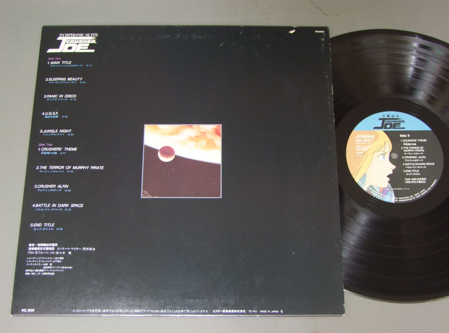 NORIO MAEDA前田憲男/SYMPHONIC SUITE CRUSHER JOE交響組曲クルーザージョー JBX25011 製造国:日本盤 / Media:LP外観:EX盤の状態:EX+ 価格(税込):¥1,100(売約済) 送料 7inch:定形外郵便 360円~LP:定形外郵便 660円~送料は、注文の最終画面で確認頂けます。 > > NORIO MAEDA/SYMPHONIC SUITE CRUSHER JOE 外観 (EX)特記事項:裏ジャケに剥がれ少々。背上下角にスレ少々。外観EXの共通説明:ダメージが限定的。中古品としては保存状態がよい方。シミ、ヨゴレ、スレ 少し~軽度。 盤の状態 (EX+)特記事項:極薄いスリキズ・スレ少しだけ。一見してきれいな状態です。盤EX+の共通説明:盤面の極薄いスリキズ、スレ少し程度 音に出そうなものは無いように見える(極軽微なソフトティック音は除く)。 Tweet それぞれの画像をクリックすると、大きい写真が見られます こちらの商品もお勧めです 440円 TALIZMANタリスマン / SUPERMAN LOCKロック組曲 超人ロック 550円 ANIME LOCKE THE SUPERMANタリスマン / TIGER OF FIREアニメ「超人ロック」炎の虎 1,650円 ANIMEアニメ / CYBORG 009サイボーグ009 770円 MOBILE SUIT GUNDAM機動戦士ガンダム / 2nd LP戦場で 550円 AURA BATTLER DUNBINE聖戦士ダンバイン / ORIGINAL SOUND TRACKダンバイン2 1,650円 ANIME SYBORG 009アニメ サイボーグ009 / TV ORIGINAL SOUNDTRACKテレビ・オリジナル・サウンドトラック 770円 SPACE RUNAWAY IDEON伝説巨神イデオン / MOVIE SOUND TRACK映画イデオン 770円 CRUSHER JOEクラッシャージョウ / SOUND TRACK音楽篇