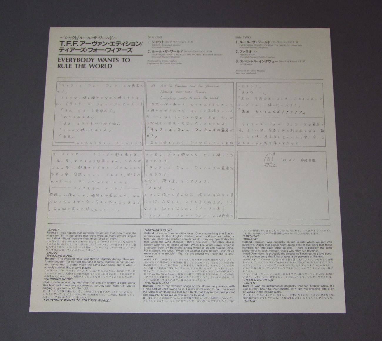 TEARS FOR FEARSティアーズ・フォー・フィアーズ/SHOUTシャウト 15PP49 製造国:日本盤 / Media:12inch外観:EX盤の状態:EX+帯:EX 価格(税込):¥1,100(売約済) 送料 7inch:定形外郵便 360円~LP:定形外郵便 660円~送料は、注文の最終画面で確認頂けます。 > > TEARS FOR FEARS/SHOUT 外観 (EX)特記事項:特記なし。外観EXの共通説明:ダメージが限定的。中古品としては保存状態がよい方。シミ、ヨゴレ、スレ 少し~軽度。 盤の状態 (EX+)特記事項:極薄いスリキズ・スレ少し。一見してきれいな状態です。盤EX+の共通説明:盤面の極薄いスリキズ、スレ少し程度 音に出そうなものは無いように見える(極軽微なソフトティック音は除く)。 帯の状態 (EX):特記なし。 Tweet それぞれの画像をクリックすると、大きい写真が見られます こちらの商品もお勧めです 1,320円 TAZMANIAN DEVILSタズマニアン・デヴィルズ / TAZMANIAN DEVILSアメリカン・ドリームを探して 1,320円 NENAネーナ / NENAロックバルーンは99 440円 TAXXIタクシー / STATES OF EMERGENCY緊急発進 ! 440円 SCREAMING BLUE MESSIAHSスクリーミング・ブルー・メサイアズ / BIKINI REDビキニ・レッド 770円 CHEAP TRICKチープ・トリック / HEAVEN TONIGHT天国の罠 770円 CHEAP TRICKチープ・トリック / AT BUDOKANAT 武道館 770円 CULTUTE CLUB / HOUSE ON FIRE 440円 BELLE STARSベル・スターズ / BELLE STARSベル・スターズ