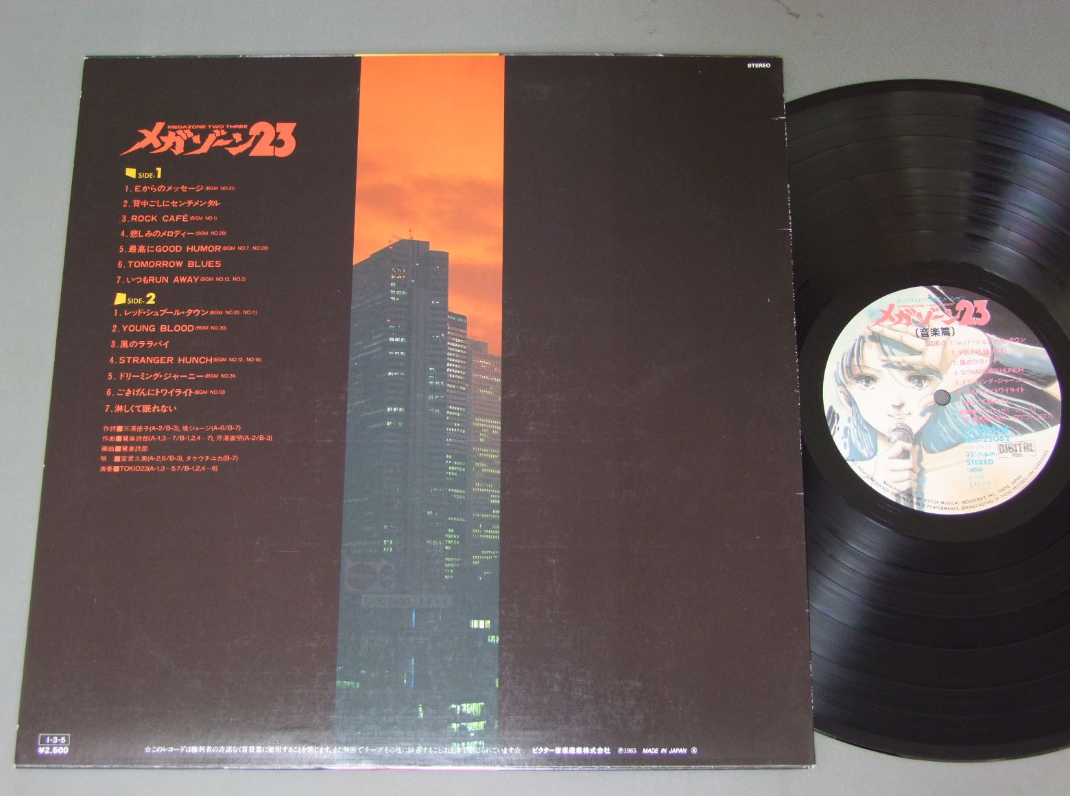 ORIGINAL VIDEO ANIMATION MEGAZONE 23/ORIGINAL VIDEO ANIMATION MEGAZONE TWO THREEオリジナルビデオアニメ《メガゾーン23》オリジナルサントラ音楽篇 JBX25062 製造国:日本盤 / Media:LP外観:EX盤の状態:EX 価格(税込):¥1,100(売約済) 送料 7inch:定形外郵便 360円~LP:定形外郵便 660円~送料は、注文の最終画面で確認頂けます。 > > ORIGINAL VIDEO ANIMATION MEGAZONE 23/ORIGINAL VIDEO ANIMATION MEGAZONE TWO THREE 外観 (EX)特記事項:特記なし。外観EXの共通説明:ダメージが限定的。中古品としては保存状態がよい方。シミ、ヨゴレ、スレ 少し~軽度。 盤の状態 (EX)特記事項:薄いスリキズ・スレ軽くある感じ。軽微なものの様子です。盤EXの共通説明:盤面のスリキズが薄いものが少し~軽度 音に出そうなものは無いように見える(軽微なソフトティック音は除く)。 Tweet それぞれの画像をクリックすると、大きい写真が見られます こちらの商品もお勧めです 550円 ANIME LOCKE THE SUPERMANタリスマン / TIGER OF FIREアニメ「超人ロック」炎の虎 770円 SPACE RUNAWAY IDEON伝説巨神イデオン / MOVIE SOUND TRACK映画イデオン 1,210円 SPACE BATTLE SHIP YAMATO宇宙戦艦ヤマト / SOUNDTRACK GOODBY YAMATOさらば宇宙戦艦ヤマト (愛の戦士たちドラマ編) 2,200円 GREAT ADVENTURE OF HORUS PRINCE OF THE SUN太陽の王子 ホルスの大冒険 / 2LP BOXオリジナル・サウンドトラック 2枚組BOX(シナリオ付) 1,210円 ANIME MAGICAL PRINCESS MINKY MOMOアニメ 魔法のプリンセス ミンキーモモ / I`LL SEE YOU IN MY DREAMSドラマ篇 夢で逢いましょう 1,320円 ANIME SIX GOD COMBINATION MARSアニメ 六神合体ゴッドマーズ / MARS AND MARG STORY + POSTERドラマ編マーズ&マーグ物語 440円 TALIZMANタリスマン / SUPERMAN LOCKロック組曲 超人ロック 1,320円 KEITH EMARSONキース・エマーソン / ORIGINAL SOUNDTRACK HARMAGEDON映画 幻魔大戦ドラマ編