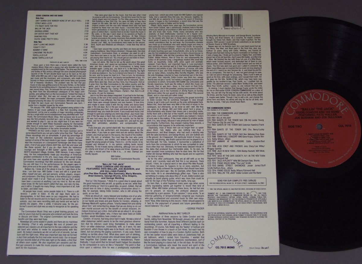 EDDIE CONDON & HIS BAND/BALLIN THE JACK CCL7015 製造国:米国盤 / Media:LP外観:EX+盤の状態:EX+ 価格(税込):¥880(売約済) 送料 7inch:定形外郵便 360円~LP:定形外郵便 660円~送料は、注文の最終画面で確認頂けます。 > > EDDIE CONDON & HIS BAND/BALLIN THE JACK 外観 (EX+)特記事項:特記なし。外観EX+の共通説明:中古としては美品、一見してきれいでダメージが軽微。シミ、ヨゴレ、スレ有っても僅か~少し。 盤の状態 (EX+)特記事項:薄いスリキズ・スレ少し。一見してきれいな状態です。盤EX+の共通説明:盤面の極薄いスリキズ、スレ少し程度 音に出そうなものは無いように見える(極軽微なソフトティック音は除く)。 Tweet それぞれの画像をクリックすると、大きい写真が見られます こちらの商品もお勧めです 880円 EVERGREEN CLASSIC JAZZ BAND / BE PREPARED FOR THE UNEXPECTED 770円 GUST WILLIAM TSILIS / PALE FIRE 1,320円 CLIFF JACKSON / HOT PIANO 550円 GORDON JENKINS / FRANCE 770円 OSCAR PETERSON / GOLDEN ACHIVE SERIES 1,980円 MODERN JAZZ QUARTET / LEGENDARY PROFILE 1,100円 BUD FREEMAN WITH CAMBRIDGE CITY JAZZBAND / BUD FREEMAN TAPES 1,100円 AL HIRT / BEST OF AL HIRT