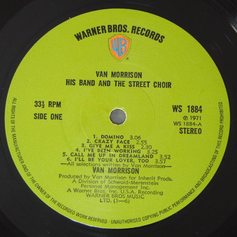 VAN MORRISON/HIS BAND AND THE STREET CHOIR WS1884 製造国:英国盤 / Media:LPMatrix:A2 | B2外観:VG+盤の状態:EX- 価格(税込):¥4,950(売約済) 送料 7inch:定形外郵便 360円~LP:定形外郵便 660円~送料は、注文の最終画面で確認頂けます。 > > VAN MORRISON/HIS BAND AND THE STREET CHOIR 外観 (VG+)特記事項:表ジャケの右上隅に剥がれ有りますが、全体的にジャケ表面はスレやスリキズ、よごれ等の少ないきれいな状態。外観VG+の共通説明:ダメージやや有り。シミ、ヨゴレ、スレなど多少~やや多め。 盤の状態 (EX-)特記事項:B1に軽めの溝スレっぽさが有りますが、針飛びもなくたまに軽いノイズが入る感じでした。白いプレスミスのような所が数カ所ありますが、軽プチ程度でさほど気にならない程度。A6で数回軽めのプチが出ます。 曲間など、静かなところを中心に聴いて見ましたが、針圧が軽いとスクラッチっぽいチリノイズが後ろのほうで感じですが、音自体はしっかり鳴っているようです。針圧重めのセッティングの方がきれいに鳴らせる感じでした。盤EX-の共通説明:盤面のスリキズが多少有り。音に出そうなものは殆ど無いように見える~さほど気にならないぐらいの軽いプチ数カ所程度。 Tweet それぞれの画像をクリックすると、大きい写真が見られます こちらの商品もお勧めです 3,850円 VAN MORRISON / PERIOD OF TRANSITION 6,600円 RORY GALLAGHER / BLUE PRINT初回LBL 7,700円 VAN MORRISON / T. B. SHEETS 3,850円 TIM BACKLEY / LOOK AT THE FOOL 3,300円 HARRY NILSSON / LITTLE TOUCH OF SCHMILSSON 4,400円 ROGER GLOVER / MASK 4,400円 GEORGIE FAME / GEORGIE DOES HIS THING WITH STRINGS 2,640円 NEIL SEDAKA / LAUGHTER AND TEARS