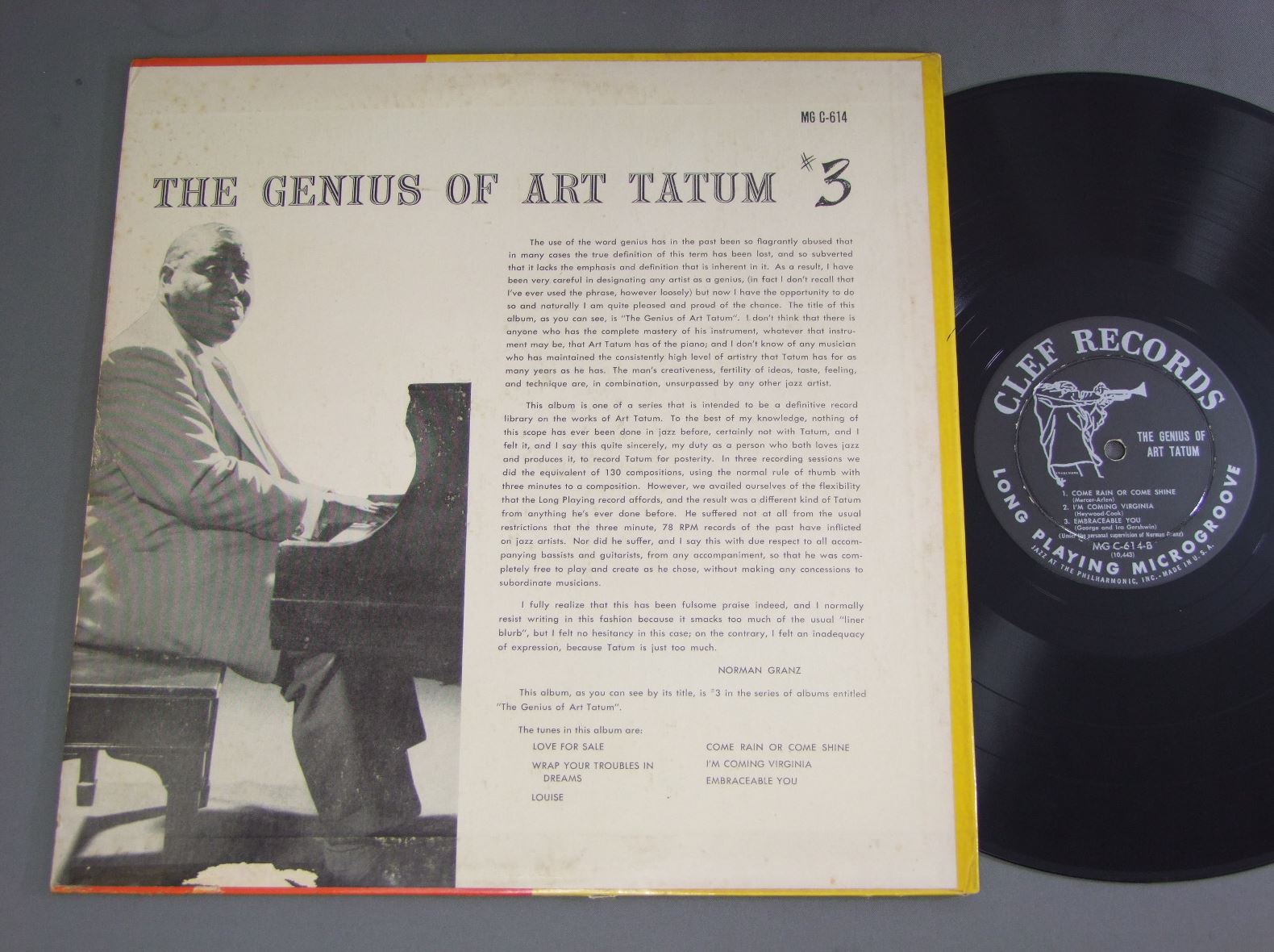 ART TATUM/GENIUS OF ART TATUM #3 MG C614 製造国:米国盤 / Media:LP外観:EX-盤の状態:EX 価格(税込):¥2,090(売約済) 送料 7inch:定形外郵便 360円~LP:定形外郵便 660円~送料は、注文の最終画面で確認頂けます。 > > ART TATUM/GENIUS OF ART TATUM #3 外観 (EX-)特記事項:表ジャケに日焼けシミ多少。裏ジャケにシミ。下ヘリ付近に剥がれ。レコード取り出し口上下に割れ。底抜け有。外観EX-の共通説明:ダメージ軽度~多少。 中古品としては普通の状態。シミ、ヨゴレ、スレなど軽く~多少。 盤の状態 (EX)特記事項:薄いスリキズ・スレ軽くある感じ。プチ出そうなところは少しだけで、ほとんどが軽微なものの様子です。盤EXの共通説明:盤面のスリキズが薄いものが少し~軽度 音に出そうなものは無いように見える(軽微なソフトティック音は除く)。 Tweet それぞれの画像をクリックすると、大きい写真が見られます こちらの商品もお勧めです 1,320円 LIONEL HAMPTON AND HIS GIANTS / LIVE IN EMMEN - HOLLAND 1,210円 YANK LAWSON & BOB HAGGART / WHAT`S NEW AUTOGRAPHEDWHAT`S NEW RALPH SUTTONサイン付 660円 DUKE ELLINGTON etc / GRANDI ORCHESTRE 770円 HARRY JAMES AND HIS ORCHESTRA / BEGINING 990円 BUCK CLAYTON / JAM SESSION VOL.1 AUTOGRAPHEDSIR CHARLESサイン付 770円 VARIOUS ARTISTS / JAZZ ROUND 1,100円 LIONEL HAMPTON / ROCK ROCK ROCK 1,210円 JIMMY McPARTLAND - WILD BILL DAVISON etc / DIXIELAND AT CARNEGIE HALL