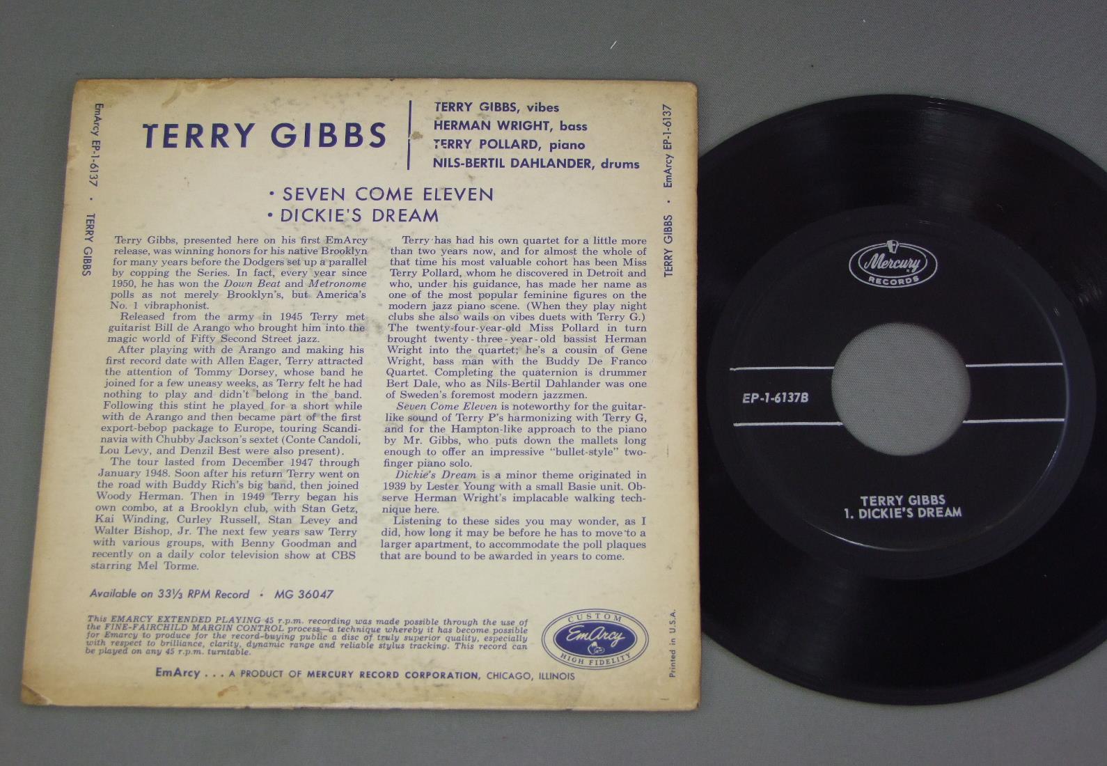 TERRY GIBBS/SEVEN COME ELEVEN EP1 6137 製造国:米国盤 / Media:7inch外観:EX-盤の状態:EX 価格(税込):¥1,980(売約済) 送料 7inch:定形外郵便 360円~LP:定形外郵便 660円~送料は、注文の最終画面で確認頂けます。 > > TERRY GIBBS/SEVEN COME ELEVEN 外観 (EX-)特記事項:底割れに補修。背や上ヘリにスレ。背や上下ヘリ、裏ジャケに日焼け。裏ジャケにすれよごれ。外観EX-の共通説明:ダメージ軽度~多少。 中古品としては普通の状態。シミ、ヨゴレ、スレなど軽く~多少。 盤の状態 (EX)特記事項:薄いスリキズ・スレ軽くある感じ。殆どが軽微なものの様子です。盤EXの共通説明:盤面のスリキズが薄いものが少し~軽度 音に出そうなものは無いように見える(軽微なソフトティック音は除く)。 Tweet それぞれの画像をクリックすると、大きい写真が見られます こちらの商品もお勧めです 990円 RAY MC KINLEY - BERNIE PRIVIN - PEANUTS HUCKO etc / JAZZMEN IN UNIFORM PARIS 1945 770円 BUDDY DEFRANCO FEATURING GORDIE FLEMING / WATERBED 1,210円 JAMES DAPOGNY & BUTCH THOMPSON / HOW COULD WE BE BLUE AUTOGRAPHEDHOW COULD WE BE BLUE サイン付 550円 GENE KRUPA / AT THE CLICK PHILADELPHIA 1947 770円 BOBBY HACKETT / AT THE EMBERS 1,100円 SAMMY PLICE WITH FESSOR`S BIG CITY BAND / COPENHAGEN BOOGIE 660円 EDDIE CONDON / SUNNY DAYS 770円 BENNY CARTER / `SKYLINE DRIVE`