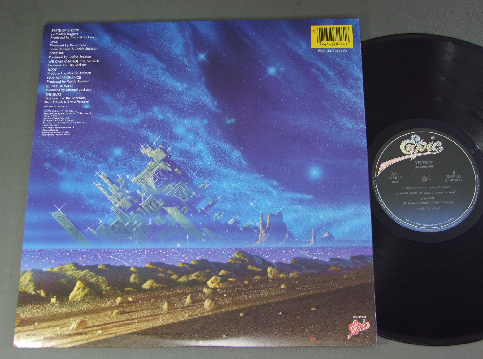 JACKSONS/VICTORY 28・3P511 製造国:日本盤 / Media:LP外観:EX盤の状態:EX+ 価格(税込):¥770(売約済) 送料 7inch:定形外郵便 360円~LP:定形外郵便 660円~送料は、注文の最終画面で確認頂けます。 > > JACKSONS/VICTORY 外観 (EX)特記事項:特記なし。外観EXの共通説明:ダメージが限定的。中古品としては保存状態がよい方。シミ、ヨゴレ、スレ 少し~軽度。 盤の状態 (EX+)特記事項:薄いスリキズ・スレ少し。一見してきれいな状態です。盤EX+の共通説明:盤面の極薄いスリキズ、スレ少し程度 音に出そうなものは無いように見える(極軽微なソフトティック音は除く)。 Tweet それぞれの画像をクリックすると、大きい写真が見られます こちらの商品もお勧めです 1,210円 VAN McCOYバン・マッコイ / MY FEVORITE FANTASYマイ・フェバリット・ファンタジー 770円 PHILIP BAILEYフィリップ・ベイリー / CONTINUATIONアナザ・フェイス 990円 STEVIE WONDERスティービー・ワンダー / SECRET LIFE OF PLANTSシークレット・ライフ 770円 THREE DEGREES & MFSBスリー・ディグリーズ &MFSB / THREE DEGREES & MFSB SHOWスリー・ディグリーズ &MFSBショー 880円 DIANA ROSSダイアナ・ロス / LIVE AT CAESARS PALACEライブ・アット・シーザース・パレス 1,210円 SMOKEY ROBINSONスモーキー・ロビンソン / ESSARエサール 440円 PEABO BRYSONピーボ・ブライソン / STRAIGHT FROM THE HEARTストレイト・フロム・ザ・ハート 770円 RAY GOODMAN & BROWNレイ、グッドマン&ブラウン / OPEN UPこの愛に気づいたら