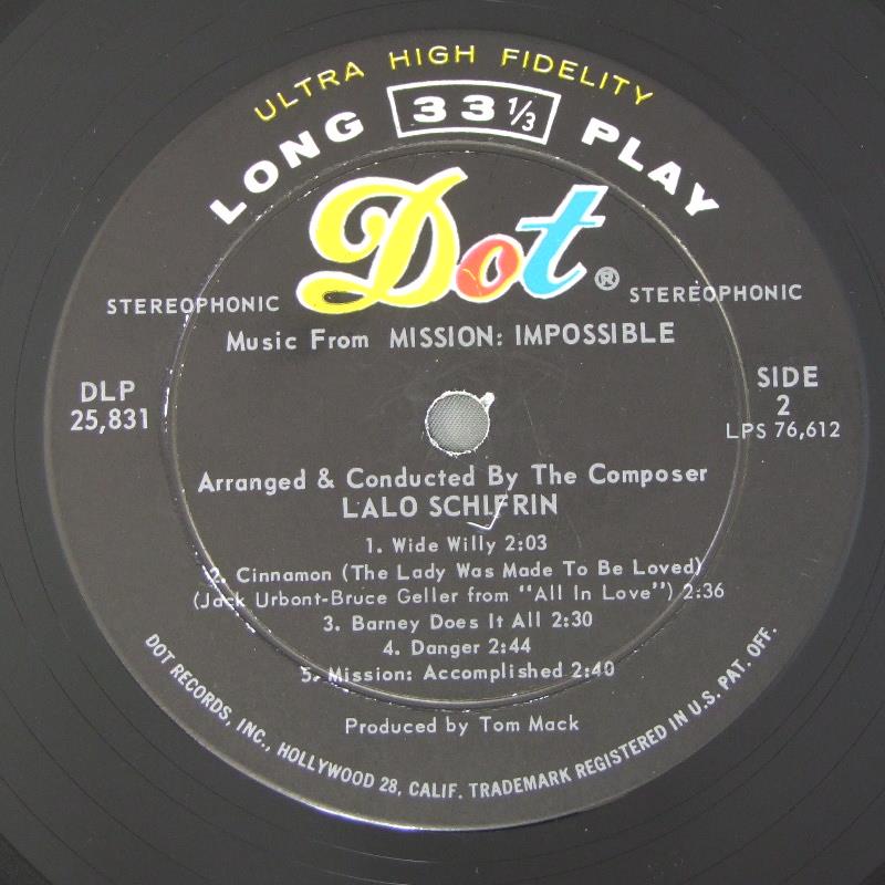 LALO SCHIFRIN/MISSION IMPOSSIBLEスパイ大作戦 DLP25831 製造国:米国盤 / Media:LP外観:EX盤の状態:EX 価格(税込):¥5,500 送料 7inch:定形外郵便 360円~LP:定形外郵便 660円~送料は、注文の最終画面で確認頂けます。 > > LALO SCHIFRIN/MISSION IMPOSSIBLE 外観 (EX)特記事項:背にヨレやスレ多いです。上へりにスレ多少。底スレも少し有り。抜け等は有りません。表ジャケ左上隅にステッカーの剥がし跡。ジャケ表面のスレやスリキズ、よごれ等は薄い感じのものが中心。外観EXの共通説明:ダメージが限定的。中古品としては保存状態がよい方。シミ、ヨゴレ、スレ 少し~軽度。 盤の状態 (EX)特記事項:薄いスリキズ・スレ軽く有る感じ。殆どが軽微なものの様子です。曲間など、静かなところを中心に聴いて見ましたが、薄いスクラッチノイズが後ろのほうで軽くある感じ。全体的なチリプチ少なめで音もクリアーに鳴っていました。盤EXの共通説明:盤面のスリキズが薄いものが少し~軽度 音に出そうなものは無いように見える(軽微なソフトティック音は除く)。 Tweet それぞれの画像をクリックすると、大きい写真が見られます こちらの商品もお勧めです