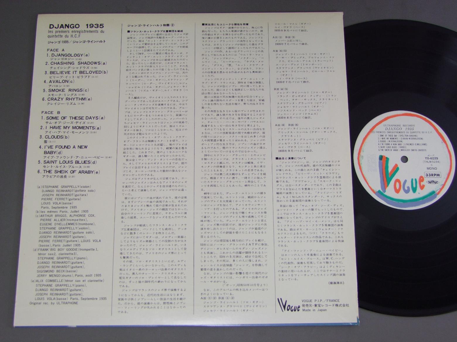 DJANGO REINHARDT/DJANGO 1935 YX4039 製造国:日本盤 / Media:LP外観:EX盤の状態:EX+ 価格(税込):¥990(売約済) 送料 7inch:定形外郵便 360円~LP:定形外郵便 660円~送料は、注文の最終画面で確認頂けます。 > > DJANGO REINHARDT/DJANGO 1935 外観 (EX)特記事項:上ヘリ付近に日焼け感軽。外観EXの共通説明:ダメージが限定的。中古品としては保存状態がよい方。シミ、ヨゴレ、スレ 少し~軽度。 盤の状態 (EX+)特記事項:極薄いスリキズ・スレ少し。一見してきれいな状態です。盤EX+の共通説明:盤面の極薄いスリキズ、スレ少し程度 音に出そうなものは無いように見える(極軽微なソフトティック音は除く)。 Tweet それぞれの画像をクリックすると、大きい写真が見られます こちらの商品もお勧めです 1,210円 WOODY HERMANウディ・ハーマン / SECOND HERDセカンド・ハード 1,210円 BUCK CLAYTON SEPTETバック・クレイトン / BUCKIN` THE BLUESバッキン・ザ・ブルース 990円 JOSHUA RIFKINジョシュア・リフキン / PIANO RAGS BY SCOTT JOPLINスコット・ジョプリンの芸術 440円 MOE KOFFMAN / GOES ELECTRIC 1,650円 MASABUMI KIKUCHI + GIL EVANS菊池雅章 / SAME TITLEWITH ギル・エヴァンス 1,210円 EDDIE CONDON & OTHERSエディ・コンドン・アンド・アザーズ / CHICAGO&ALL THAT JAZZ!シカゴ・アンド・オール・ザット・ジャズ! 770円 ART TATUM AND HIS BANDアート・テイタム / FEATURING BIG JOETURNER JOE THOMAS EDMODHALL MARSHALL ROYALオール・スター・セッション 1,210円 BUCK CLAYTON SEPTETバック・クレイトン / BUCKIN`THE BLUESバッキン・ザ・ブルース