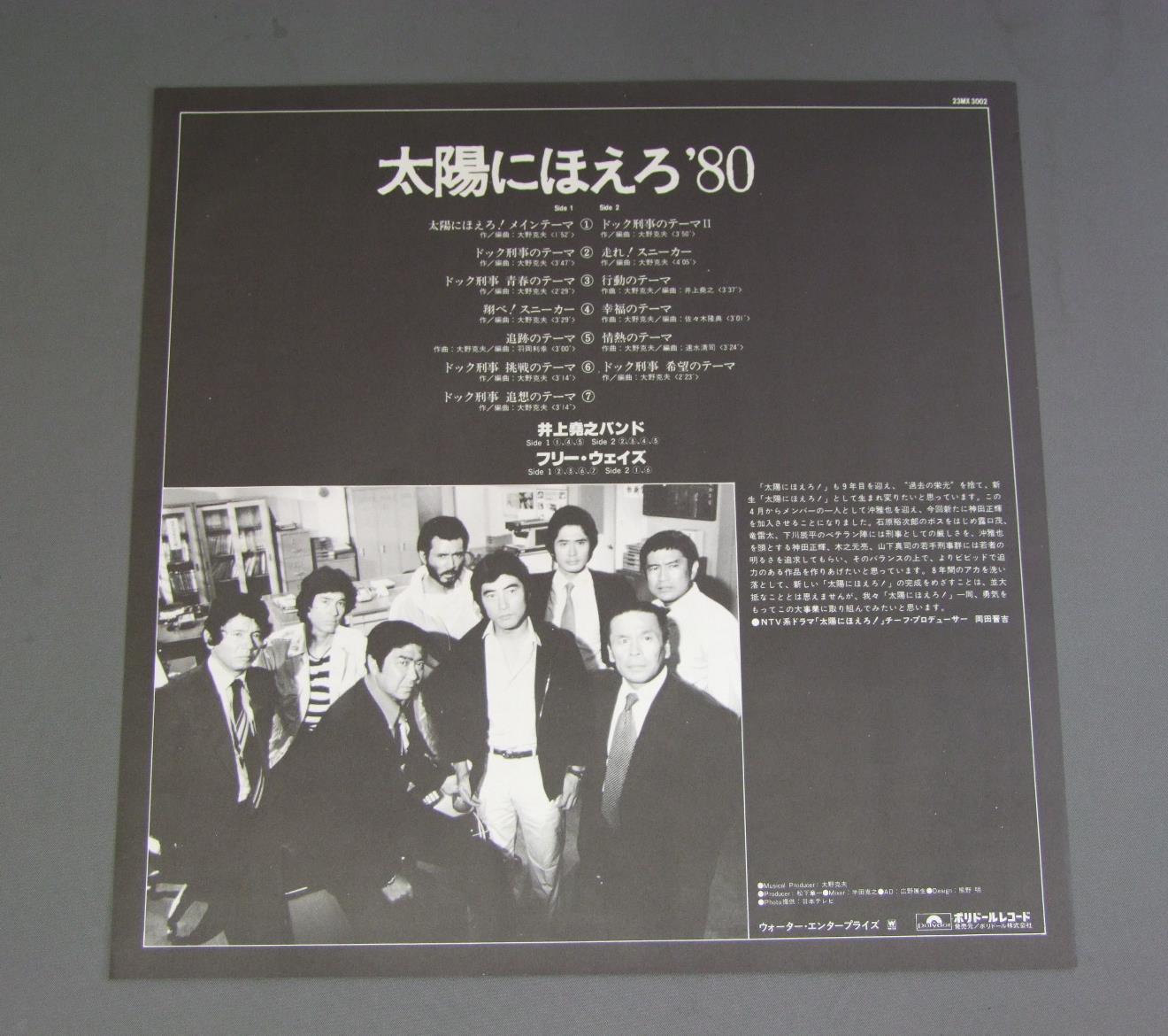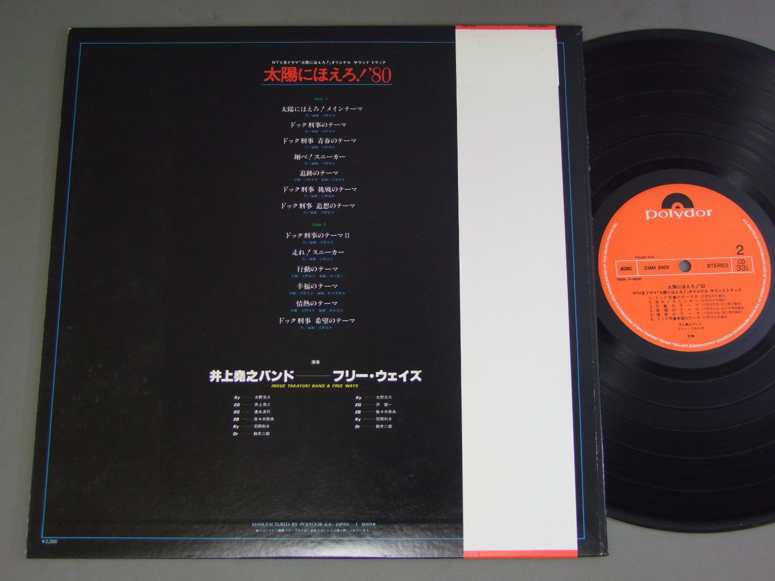 INOUE TAKAYUKI BAND & FREE WAYS井上堯之バンド&フリー・ウェイズ/ドラマ「太陽にほえろ!」 `80 オリジナル・サウンド・トラック 23MX3002 製造国:日本盤 / Media:LP外観:EX+盤の状態:EX+帯:EX+ 価格(税込):¥1,650(売約済) 送料 7inch:定形外郵便 360円~LP:定形外郵便 660円~送料は、注文の最終画面で確認頂けます。 > > INOUE TAKAYUKI BAND & FREE WAYS/ 外観 (EX+)特記事項:特記なし。外観EX+の共通説明:中古としては美品、一見してきれいでダメージが軽微。シミ、ヨゴレ、スレ有っても僅か~少し。 盤の状態 (EX+)特記事項:極薄いスリキズ・スレ少し。一見してきれいな状態です。盤EX+の共通説明:盤面の極薄いスリキズ、スレ少し程度 音に出そうなものは無いように見える(極軽微なソフトティック音は除く)。 帯の状態 (EX+):特記なし。 Tweet それぞれの画像をクリックすると、大きい写真が見られます こちらの商品もお勧めです 880円 平尾昌晃 水谷豊 / ドラマ 熱中時代-主演・水谷豊 770円 ORIGINAL SOUND TRACKオリジナル・サウンドトラック / SUPERMAN 2映画 スーパーマン2 冒険編 1,650円 FRANCIS COPPOLAフランシス・コッポラ / SOUND TRACK APOCALYPSE NOW映画 地獄の黙示録 1,650円 FRANCIS COPPOLAフランシス・コッポラ / SOUNDTRACK APOCALYPSE NOWサントラ 地獄の黙示録 2,530円 M.DIETRCH-L. HARVEY etcマレーネ・ディートリッヒ-リリアン・ハーヴェイ 他 / EUROPEAN CINEMA MUSIC OF GOLDEN AGE + POSTERSオリジナル盤による戦前欧羅巴映画主題歌集 ドイツ篇-フランス篇 ポスター付 1,210円 JOHN BARRYジョン・バリー / 10th ANNIVERSARY JAMES BOND ALBUM映画007 スーパー・パック 1,320円 無声映画鑑賞会 / おお活動大写真 1,650円 MOMOE YAMAGUCHI & TOMOKAZU MIURA山口百恵と三浦友和 / WHITE LOVEホワイト・ラブ