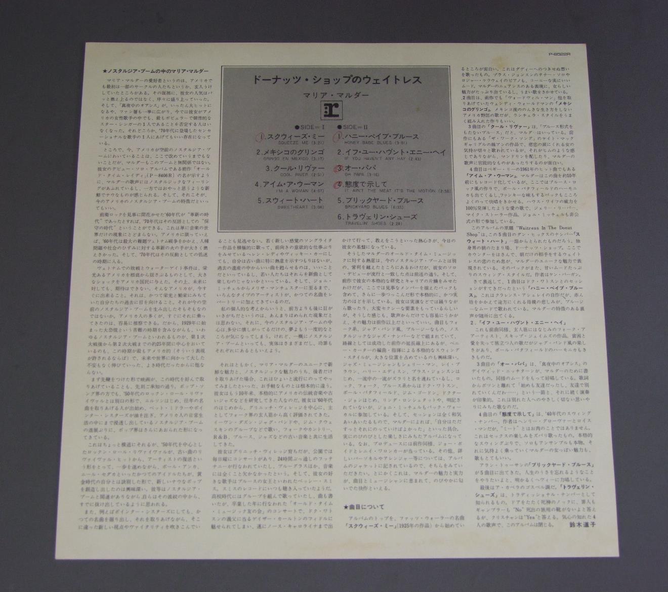 MARIA MULDAURマリア・マルダー/WAITRESS IN A DONUT SHOPドーナッツ・ショップのウェイトレス P8522R 製造国:日本盤 / Media:LP外観:EX盤の状態:EX+ 価格(税込):¥1,650(売約済) 送料 7inch:定形外郵便 360円~LP:定形外郵便 660円~送料は、注文の最終画面で確認頂けます。 > > MARIA MULDAUR/WAITRESS IN A DONUT SHOP 外観 (EX)特記事項:裏ジャケにシミが少し。解説カードに書き込みやシミ。外観EXの共通説明:ダメージが限定的。中古品としては保存状態がよい方。シミ、ヨゴレ、スレ 少し~軽度。 盤の状態 (EX+)特記事項:極薄いスリキズ・スレ少し。一見してきれいな状態です。盤EX+の共通説明:盤面の極薄いスリキズ、スレ少し程度 音に出そうなものは無いように見える(極軽微なソフトティック音は除く)。 Tweet それぞれの画像をクリックすると、大きい写真が見られます こちらの商品もお勧めです 990円 VERONIQUE SANSONヴェロニック・サンソン / LIVE AT THE OLYMPIAライヴ・アット・オランピア 990円 MIREILLE MATHIEUミレイユ・マチュー / GOLDEN COLLECTIONゴールデン・コレクション 990円 DANIELLE LICARIダニエル・リカーリ / DANIELLE LICARIふたりの天使・シェルブールの雨傘 770円 VERONIQUE SANSONヴェロニク・サンソン / VANCOUVER想い出 770円 LACY J DALTONレイシー・ダルトン / TENNESSEE WALTZテネシー・ワルツ 1,210円 DIANA ROSSダイアナ・ロス / EATEN ALIVEイートウン・アライブ 550円 OLIVIA NEWTON-JOHNオリビア・ニュートン・ジョン / TOTALLY HOTさよならは一度だけ 770円 MARILYN MARTINマリリン・マーティン / MARILYN MARTINマリリン・マーティン