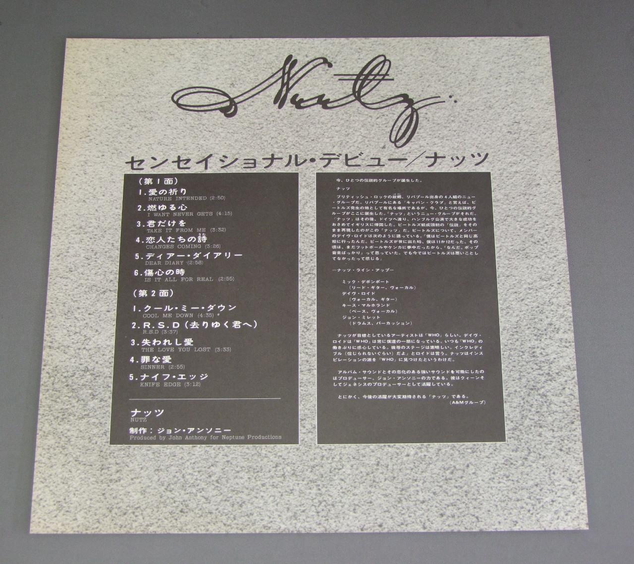 NUTZナッツ/NUTZ TOO1st LBUM GP259 製造国:日本盤 / Media:LP外観:EX盤の状態:EX+ 価格(税込):¥1,650(売約済) 送料 7inch:定形外郵便 360円~LP:定形外郵便 660円~送料は、注文の最終画面で確認頂けます。 > > NUTZ/NUTZ TOO 外観 (EX)特記事項:レコードリングスレ等スレ多少有り。外観EXの共通説明:ダメージが限定的。中古品としては保存状態がよい方。シミ、ヨゴレ、スレ 少し~軽度。 盤の状態 (EX+)特記事項:極薄いスリキズ・スレ少し。一見してきれいな状態です。盤EX+の共通説明:盤面の極薄いスリキズ、スレ少し程度 音に出そうなものは無いように見える(極軽微なソフトティック音は除く)。 その他:レーベルに見本盤スタンプ Tweet それぞれの画像をクリックすると、大きい写真が見られます こちらの商品もお勧めです 990円 BAD COMPANYバッド・カンパニー / RUN WITH THE PACKバッド・カンパニー ?-ラン・ウィズ・ザ・パック 1,210円 DUKESデュークス / 1st ALBUM運命の旅立ち 1,210円 ABBAアバ / ABBA GREATEST HITS VOL2アバ・グレイテスト・ヒッツ VOL2 990円 ABBAアバ / VOULEZ-VOUSヴーレ・ヴー 440円 BAY CITY ROLLERSベイ・シティ・ローラーズ / WOULDN`T YOU LIKE IT ?青春のアイドル 1,210円 PAT McGLYNN`S SCOTTIESパット・マッグリンとスコッティーズ / PAT McGLYNN`S SCOTTIESパット・デビュー ! あの娘はアイドル 1,320円 WILLIE & THE POOR BOYSウィリーとプア・ボーイズ / ACTION FOR RESEARCH INTO MULTIPLE SCLEROSISロニー・レイン救済基金 1,210円 ABBAアバ / VOULEZ-VOUSヴーレ・ヴー