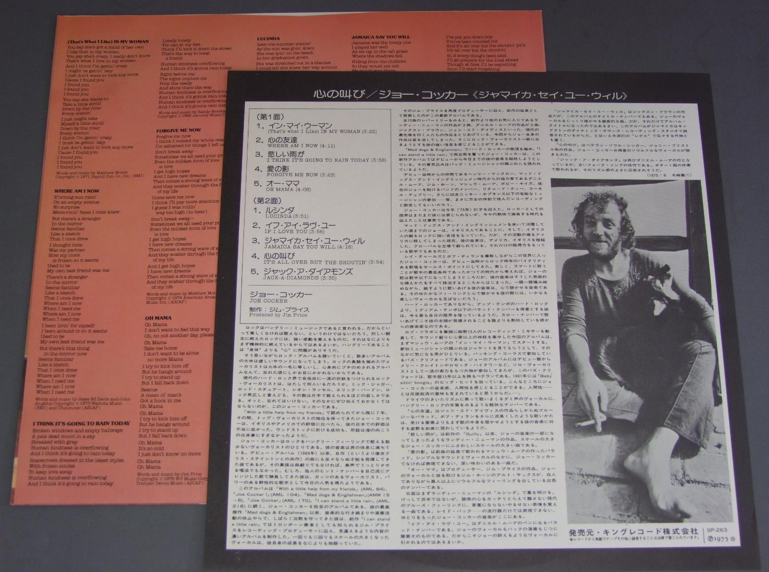 JOE COCKER/JAMAICA SAY YOU WILL心の叫び GP263 製造国:日本盤 / Media:LP外観:EX盤の状態:EX+ 価格(税込):¥1,320(売約済) 送料 7inch:定形外郵便 360円~LP:定形外郵便 660円~送料は、注文の最終画面で確認頂けます。 > > JOE COCKER/JAMAICA SAY YOU WILL 外観 (EX)特記事項:特記なし。外観EXの共通説明:ダメージが限定的。中古品としては保存状態がよい方。シミ、ヨゴレ、スレ 少し~軽度。 盤の状態 (EX+)特記事項:極薄いスリキズ・スレ少し。一見してきれいな状態です。盤EX+の共通説明:盤面の極薄いスリキズ、スレ少し程度 音に出そうなものは無いように見える(極軽微なソフトティック音は除く)。 その他:白見本盤 Tweet それぞれの画像をクリックすると、大きい写真が見られます こちらの商品もお勧めです 1,210円 WILLIE NELSONウィリー・ネルソン / PARTNERSサムシング 1,210円 SIMON & GARFUNKELサイモンとガーファンクル / WEDNESDAY MORNING 3AM水曜日の朝午前3時 770円 GARY WRIGHTゲイリー・ライト / TOUCH AND GONEタッチ・アンド・ゴーン 440円 NEIL DIAMONDニール・ダイアモンド / SERENADE永遠のセレナーデ 1,320円 NICOLAS DE ANGELISニコラ・デ・アンジェリス / L`ESPAGNOLE ET VOYAGE悲しみのスペイン 660円 ARLO GUTHRIEアーロ・ガスリー / AMIGOアミーゴに捧げる歌 440円 ERIC CARMENエリック・カルメン / ERIC CARMENエリック・カルメン 770円 DAN FOGELBERGダン・フォーゲルバーグ / PHOENIXフェニックス