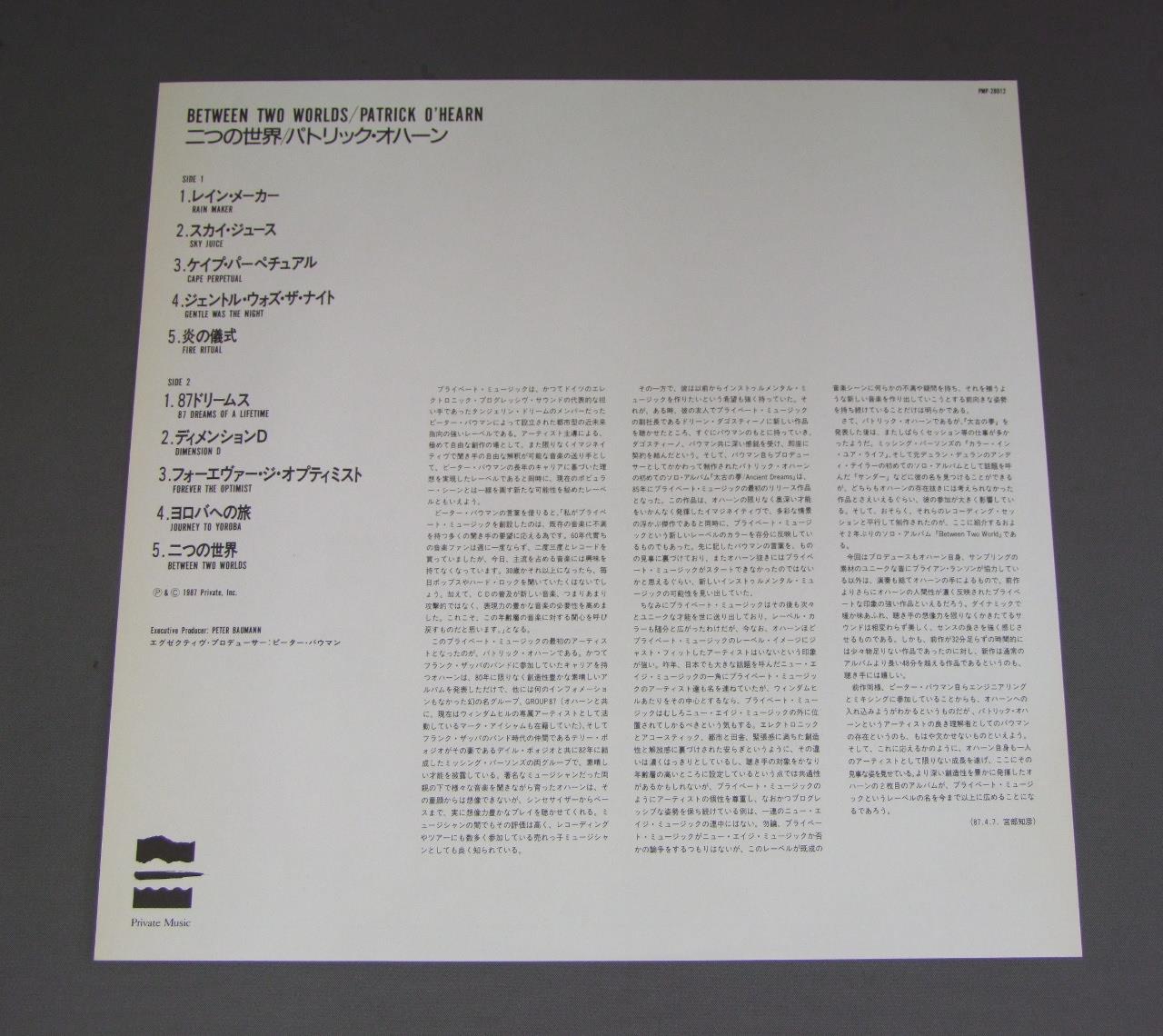 PATRICK O`HEARNパトリック・オハーン/BETWEEN TWO WORLDS二つの世界 PMP28012 製造国:日本盤 / Media:LP外観:EX盤の状態:EX+帯:VG+ 価格(税込):¥2,984(売約済) 送料 7inch:定形外郵便 360円~LP:定形外郵便 660円~送料は、注文の最終画面で確認頂けます。 > > PATRICK O`HEARN/BETWEEN TWO WORLDS 外観 (EX)特記事項:裏ジャケ左上隅にステッカー跡。外観EXの共通説明:ダメージが限定的。中古品としては保存状態がよい方。シミ、ヨゴレ、スレ 少し~軽度。 盤の状態 (EX+)特記事項:極薄いスリキズ・スレ少し。一見してきれいな状態です。盤EX+の共通説明:盤面の極薄いスリキズ、スレ少し程度 音に出そうなものは無いように見える(極軽微なソフトティック音は除く)。 帯の状態 (VG+):表側に破けやヨレ その他:見本盤 Tweet それぞれの画像をクリックすると、大きい写真が見られます こちらの商品もお勧めです 770円 HUBERT KAHヒューバート・カー / ANGEL 07エンジェル07 1,210円 SIMON & GARFUNKELサイモンとガーファンクル / WEDNESDAY MORNING 3AM水曜日の朝午前3時 770円 PETER ALLENピーター・アレン / BI-COASTALバイ・コースタル 660円 LARRY FASTラリー・ファースト / ELECTRONIC REALIZATIONS FOR ROCK ORCHESTRA/SYNERGY「エレクトロニクスによるロック・オーケストラの実現」シナジー 440円 JOHNNY MATHISジョニー・マチス / LOVE IS BLUE恋はみずいろ 1,320円 GARY WRIGHTゲイリー・ライト / LIGHT OF SMILESライト・オブ・スマイル 1,320円 NEIL LAREN二ール・ラーセン / JUNGLE FEVERジャングル・フィーバー 770円 BERTIE HIGGINSバーティ・ヒギンズ / JUST ANOTHER DAY IN PARADISEカサブランカ