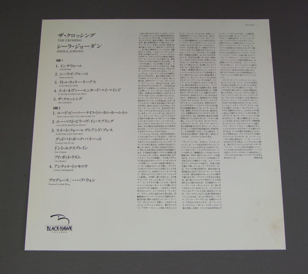 SHEILA JORDAN/CROSSING ALZ28009 製造国:日本盤 / Media:LP外観:EX盤の状態:EX+ 価格(税込):¥1,320(売約済) 送料 7inch:定形外郵便 360円~LP:定形外郵便 660円~送料は、注文の最終画面で確認頂けます。 > > SHEILA JORDAN/CROSSING 外観 (EX)特記事項:ジャケ周辺部に多少日焼け感軽有り。外観EXの共通説明:ダメージが限定的。中古品としては保存状態がよい方。シミ、ヨゴレ、スレ 少し~軽度。 盤の状態 (EX+)特記事項:極薄いスリキズ・スレ少し。一見してきれいな状態です。盤EX+の共通説明:盤面の極薄いスリキズ、スレ少し程度 音に出そうなものは無いように見える(極軽微なソフトティック音は除く)。 その他:見本盤 Tweet それぞれの画像をクリックすると、大きい写真が見られます こちらの商品もお勧めです 990円 CLEO LAINEクレオ・レーン / RETURN TO CARNEGIEリターン・トゥ・カーネギー 990円 BRENDA LEEブレンダ・リー / GREAT HITS OF BRENDA LEEブレンダ・リー大全集 990円 BILLIE HOLIDAYビリー・ホリデイ / BILLIE HOLIDAYビリー・ホリデイの魂 770円 MITCH MILLER AND THE GANGミッチ・ミラー合唱団 / HOME CHORUS PARTY VOL2 60s ISSUEホーム・コーラス・パーティ 第2集 ペラジャケ 1,320円 CARMEN McRAE AND JOE WILLIAMSカーメン・マクレエ & ジョー・ウイリアムス / IN CONCERTイン コンサート 770円 SWINGLE SINGERSスイングル・シンガーズ / JAZZ SEBASTIEN BACHジャズ・セバスチャン・バッハ 1,210円 CLEO LAINEクレオ・レーン / BORN ON A FRIDAY金曜日のクレオ 1,320円 CLEO LAINEクレオ・レーン / AT THE WAVENDON FESTIVALジス・イズ・クレオ -クレオ・レーン・アット・ザ・ウェイヴンドン-