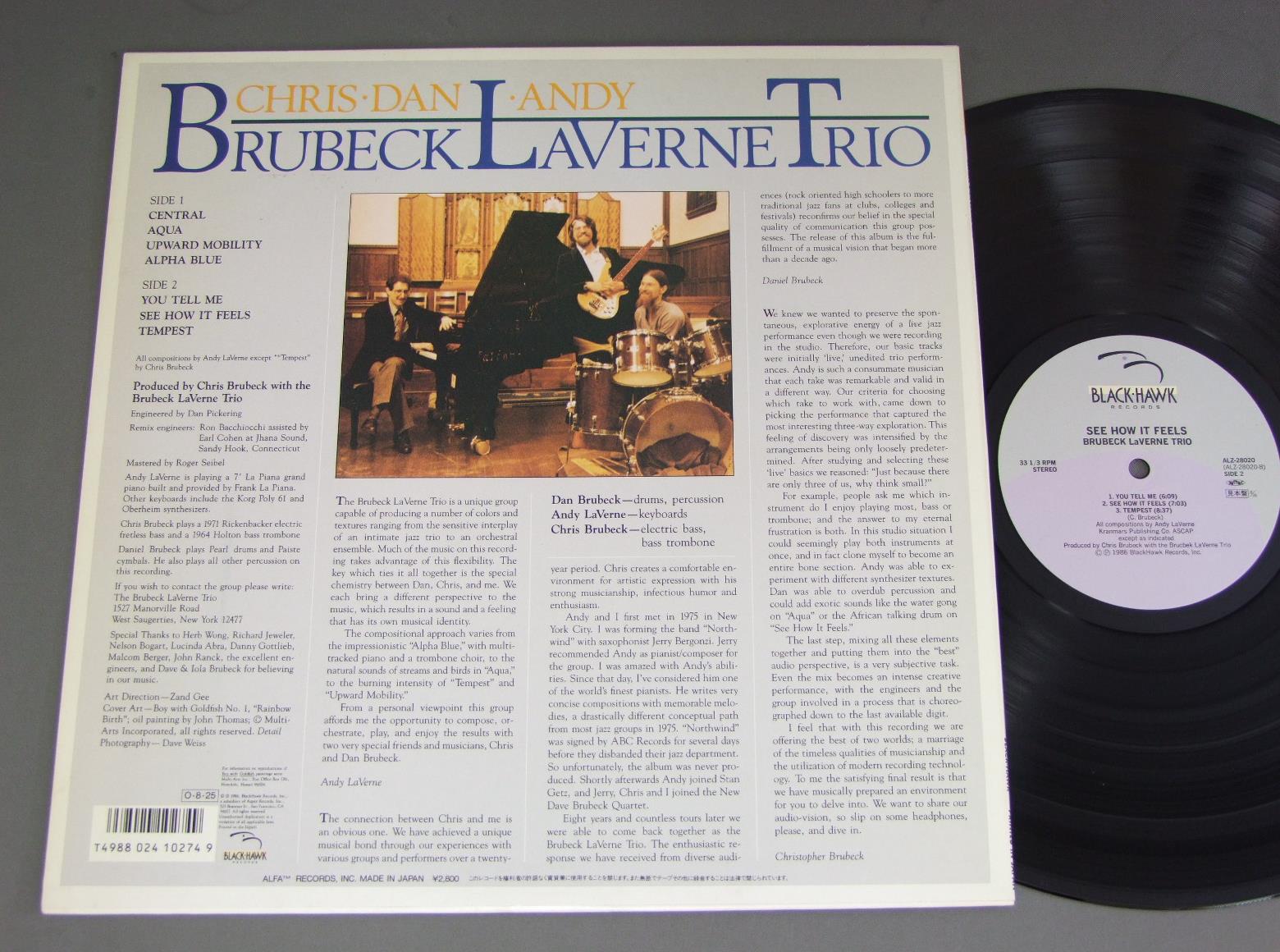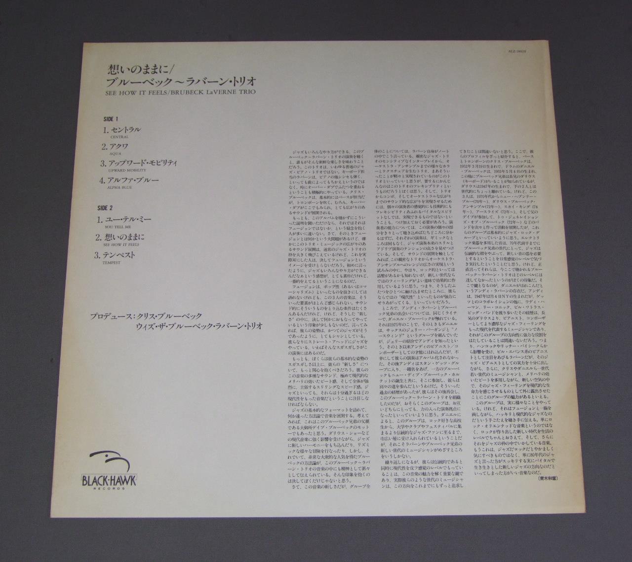 BRUBECK & LAVERNE TRIO/SEE HOW IT FEELS想いのままに ALZ28020 製造国:日本盤 / Media:LP外観:EX盤の状態:EX+ 価格(税込):¥1,320(売約済) 送料 7inch:定形外郵便 360円~LP:定形外郵便 660円~送料は、注文の最終画面で確認頂けます。 > > BRUBECK & LAVERNE TRIO/SEE HOW IT FEELS 外観 (EX)特記事項:ジャケ周辺部に多少日焼け感軽有り。外観EXの共通説明:ダメージが限定的。中古品としては保存状態がよい方。シミ、ヨゴレ、スレ 少し~軽度。 盤の状態 (EX+)特記事項:極薄いスリキズ・スレ少し。一見してきれいな状態です。盤EX+の共通説明:盤面の極薄いスリキズ、スレ少し程度 音に出そうなものは無いように見える(極軽微なソフトティック音は除く)。 その他:見本盤 Tweet それぞれの画像をクリックすると、大きい写真が見られます こちらの商品もお勧めです 880円 HERBIE MANNハービー・マン / EVOLUTION OF MANNハービー・マン・ストーリー 1,320円 RAMSEY LEWIS -BOB JAMES etcラムゼイ・ルイス - ボブ・ジェームス他 / ONE-NIGHT STAND A KEYBOARD EVENTワンナイト・スタンド-キーボード・イベント 2,640円 EDDIE CONDON ALL STARSエディ・コンドン・オール・スターズ / EDDIE CONDON ALL STARS 1944 5LP BOX SETエディ・コンドン・オール・スターズ1944 5枚組 770円 ENSEMBLE NIPPONIA日本音楽集団 / WORKS OF KATSUTOSHI NAGASAWA (HOSHUN)長澤勝俊作品集萌春 1,210円 WOODY HERMANウディ・ハーマン / SECOND HERDセカンド・ハード 1,210円 GEORGE LEWISジョージ・ルイス / GEORGE LEWIS AT CLUB HANGOVER VOL2ジョージ・ルイス・アット・クラブ・ハングォーヴァーVOL2 1,210円 BINGO MIKI & INNER GALAXY ORCHESTRA三木敏悟&インナー・ギャラクシー・オーケストラ / EVE(EIGHT LETTERS)出航前夜-一通の手紙 990円 JOSHUA RIFKINジョシュア・リフキン / PIANO RAGS BY SCOTT JOPLINスコット・ジョプリンの芸術