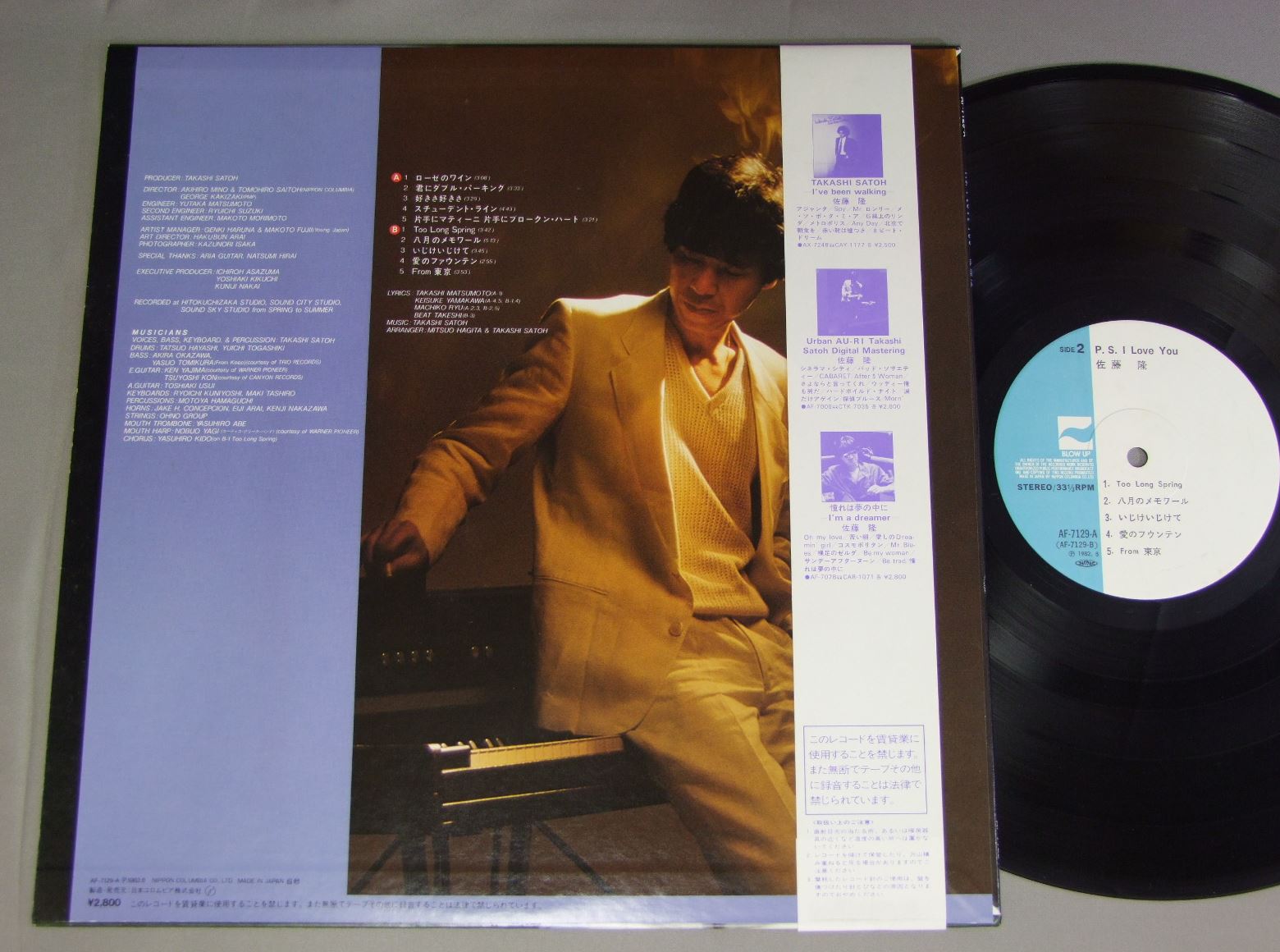 TAKASHI SATOH佐藤隆/P.S.I LOVE YOUピーエス・アイ・ラブ・ユー AF7129A 製造国:日本盤 / Media:LP外観:EX+盤の状態:EX+帯:EX 価格(税込):¥990(売約済) 送料 7inch:定形外郵便 360円~LP:定形外郵便 660円~送料は、注文の最終画面で確認頂けます。 > > TAKASHI SATOH/P.S.I LOVE YOU 外観 (EX+)特記事項:特記なし。外観EX+の共通説明:中古としては美品、一見してきれいでダメージが軽微。シミ、ヨゴレ、スレ有っても僅か~少し。 盤の状態 (EX+)特記事項:極薄いスリキズ・スレ少し。一見してきれいな状態です。盤EX+の共通説明:盤面の極薄いスリキズ、スレ少し程度 音に出そうなものは無いように見える(極軽微なソフトティック音は除く)。 帯の状態 (EX):特記なし。 Tweet それぞれの画像をクリックすると、大きい写真が見られます こちらの商品もお勧めです 990円 GO NAGABUCHI長渕剛 / GYAKURYU逆流 1,320円 KEIKO SAITO斉藤慶子 / KEIKO MONO OMOI慶子、もの想い 990円 RYOKO MORIYAMA森山良子 / RYOKO NOW旅立ち-森山良子-1972 880円 YOUSUI INOUE井上陽水 / EVERY NIGHT 990円 HISAO KUROSAWA-COLLEGE POPS SINGERS etc黒沢久雄 フォーククルセダーズ ザリガニーズ 他 / JAPANESE FOLK SONG ENCYCLOPEDIA日本フォーク大百科事典 1,210円 PEDRO & CAPRICIOUSペドロ &カプリシャス / BEST ALBUMスター・ベスト・ヒット・コレクション 770円 S.KIYOTAKA & OMEGA TRIBE杉山清貴 & オメガドライブ / LIVE EMOTIONライヴ・エモーション 660円 GO NAGABUCHI長渕 剛 / GYAKURYU逆流