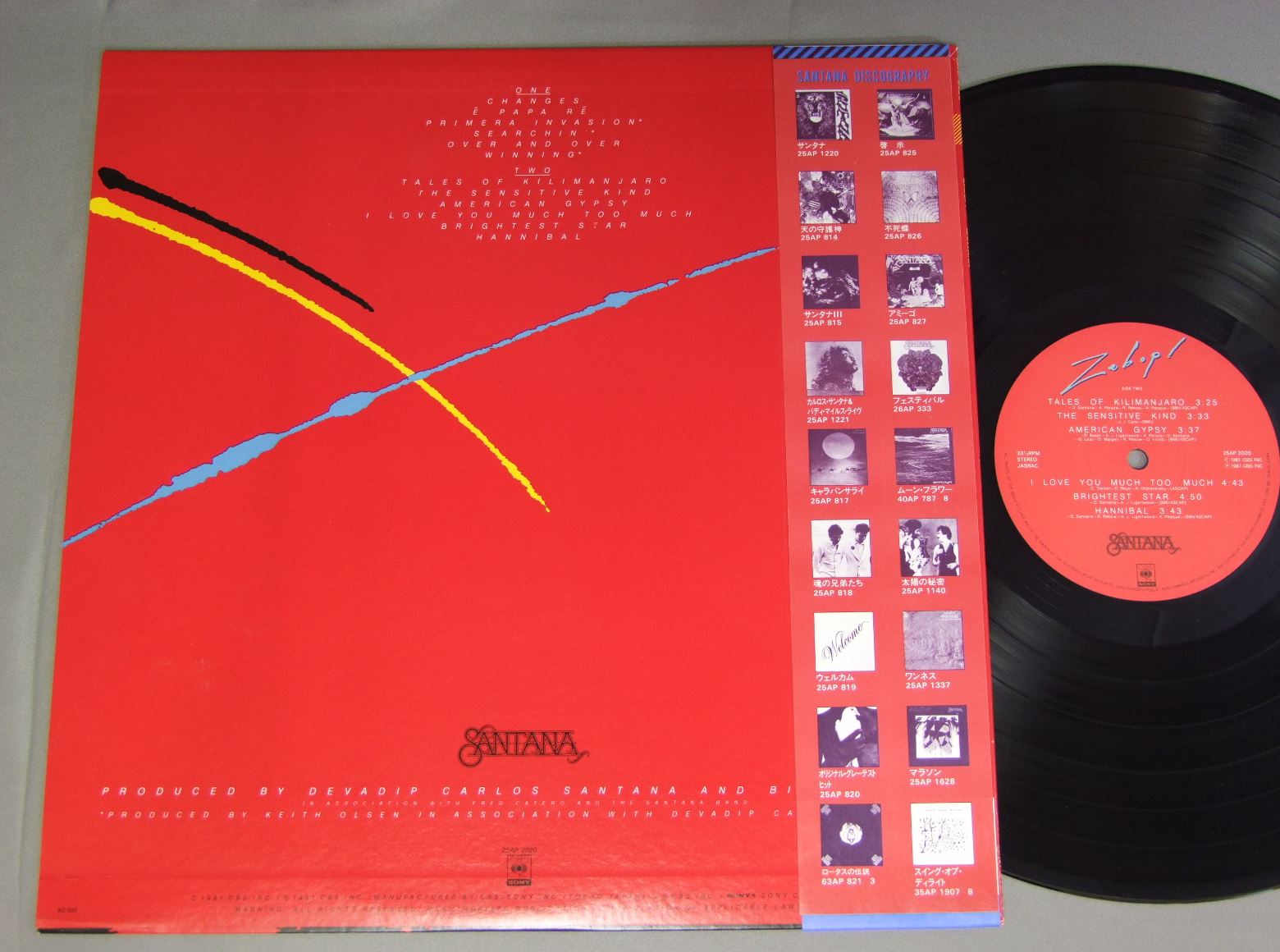 SANTANAサンタナ/ZEBOP!ジーバップ! 25AP2020 製造国:日本盤 / Media:LP外観:EX+盤の状態:EX+帯:EX+ 価格(税込):¥1,320(売約済) 送料 7inch:定形外郵便 360円~LP:定形外郵便 660円~送料は、注文の最終画面で確認頂けます。 > > SANTANA/ZEBOP! 外観 (EX+)特記事項:特記なし。外観EX+の共通説明:中古としては美品、一見してきれいでダメージが軽微。シミ、ヨゴレ、スレ有っても僅か~少し。 盤の状態 (EX+)特記事項:極薄いスリキズ・スレ少し。一見してきれいな状態です。盤EX+の共通説明:盤面の極薄いスリキズ、スレ少し程度 音に出そうなものは無いように見える(極軽微なソフトティック音は除く)。 帯の状態 (EX+):特記なし。 Tweet それぞれの画像をクリックすると、大きい写真が見られます こちらの商品もお勧めです 440円 BOB SEGER & THE SILVER BULLET BANDボブ・シーガー&ザ・シルバー・ブレット・バンド / DISTANCEディスタンス 1,320円 TUXEDO JUNCTIONタキシード・ジャンクション / CHATTANOOGA CHOO CHOOチャタヌガ・チュー・チュー 770円 SANTANAサンタナ / CARAVANSERAIキャラバンサライ 770円 MARC TANNER BANDマーク・タナー・バンド / TEMPTATIONテンプテーション 1,320円 SANTANAサンタナ / MOON FLAWERムーン・フラワー 1,650円 LIGHT HOUSEライトハウス / SUNNY DAYSサニー・デイズ 770円 REO SPEED WAGONREOスピード・ワゴン / REO SPEED WAGON LIVEREO ライブ 嵐の中へ 1,320円 GARY LEWIS AND THE PLAYBOYSゲーリー・ルイスとプレイボーイズ / THIS DIAMOND RING恋のダイアモンド・リング