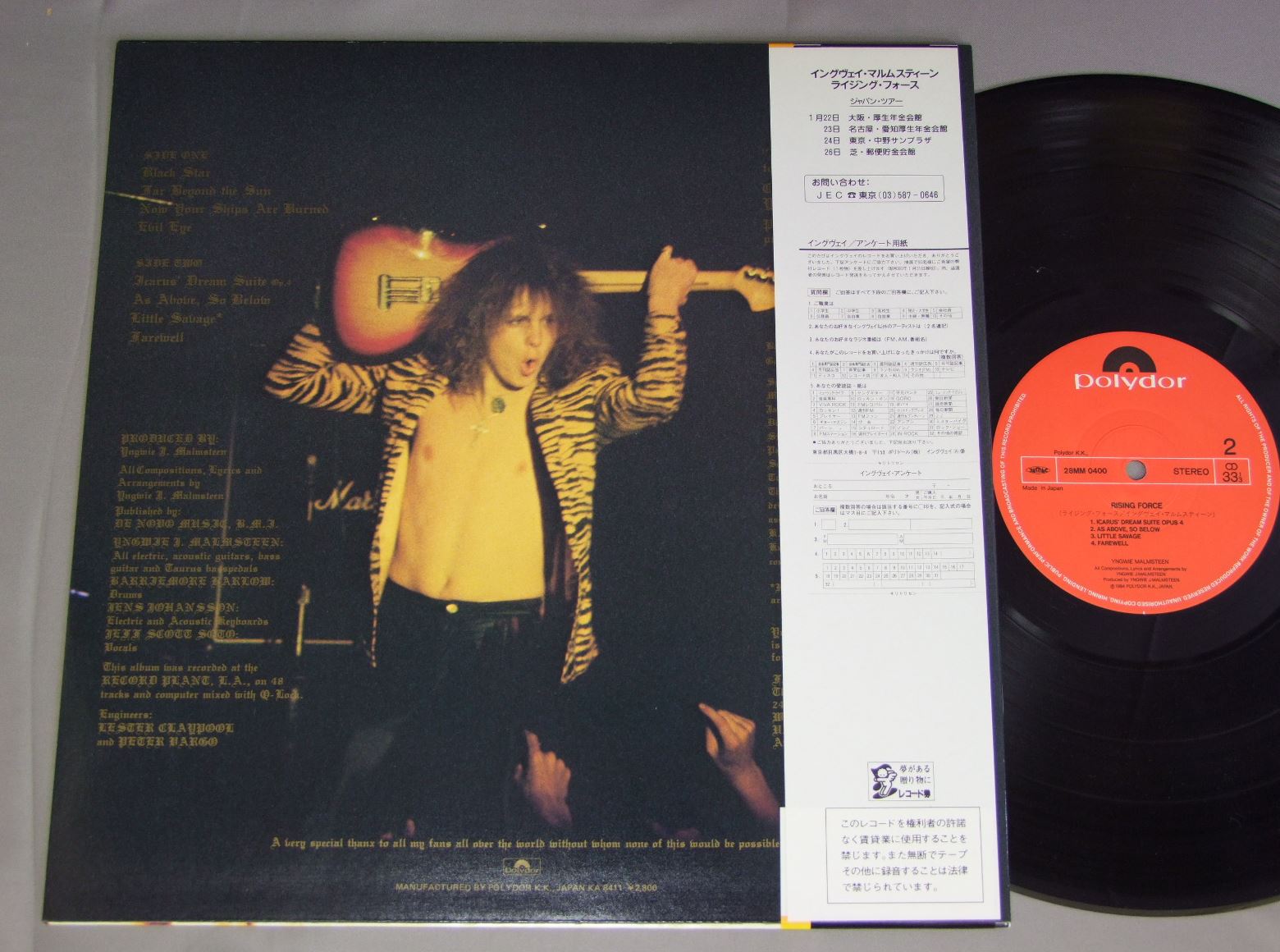 YNGWIE MALMSTEEN/RISING FORCE 28MM0400 製造国:日本盤 / Media:LP外観:EX+盤の状態:EX+帯:EX+ 価格(税込):¥1,320(売約済) 送料 7inch:定形外郵便 360円~LP:定形外郵便 660円~送料は、注文の最終画面で確認頂けます。 > > YNGWIE MALMSTEEN/RISING FORCE 外観 (EX+)特記事項:特記なし。外観EX+の共通説明:中古としては美品、一見してきれいでダメージが軽微。シミ、ヨゴレ、スレ有っても僅か~少し。 盤の状態 (EX+)特記事項:極薄いスリキズ・スレ少し。一見してきれいな状態です。盤EX+の共通説明:盤面の極薄いスリキズ、スレ少し程度 音に出そうなものは無いように見える(極軽微なソフトティック音は除く)。 帯の状態 (EX+):特記なし。 Tweet それぞれの画像をクリックすると、大きい写真が見られます こちらの商品もお勧めです 1,980円 MACHAEL SCHENKER GROOPマイケル・シェンカー・グループ / MSG神話 1,320円 NIGHT RANGERナイト・レンジャー / MIDNIGHT MADNESSミッドナイト・マッドネス 770円 HAGAR SCHON AARONSON HRIEVEヘイガー、ショーン、アローソン、シュリーヴ / THROUGH THE FIRE炎の饗宴 660円 ANGELエンジェル / ANGEL 660円 NIGHT RANGER / DAWN PATROL緊急指令 990円 ANGELエンジェル / ANGEL天使の美学 2,200円 KEELキール / FINAL FRONTIERファイナル・フロンティア 660円 NIGHT RANGER / MIDNIGHT MADNESS + BOOKMIDNIGHT MADNESS + BOOK付