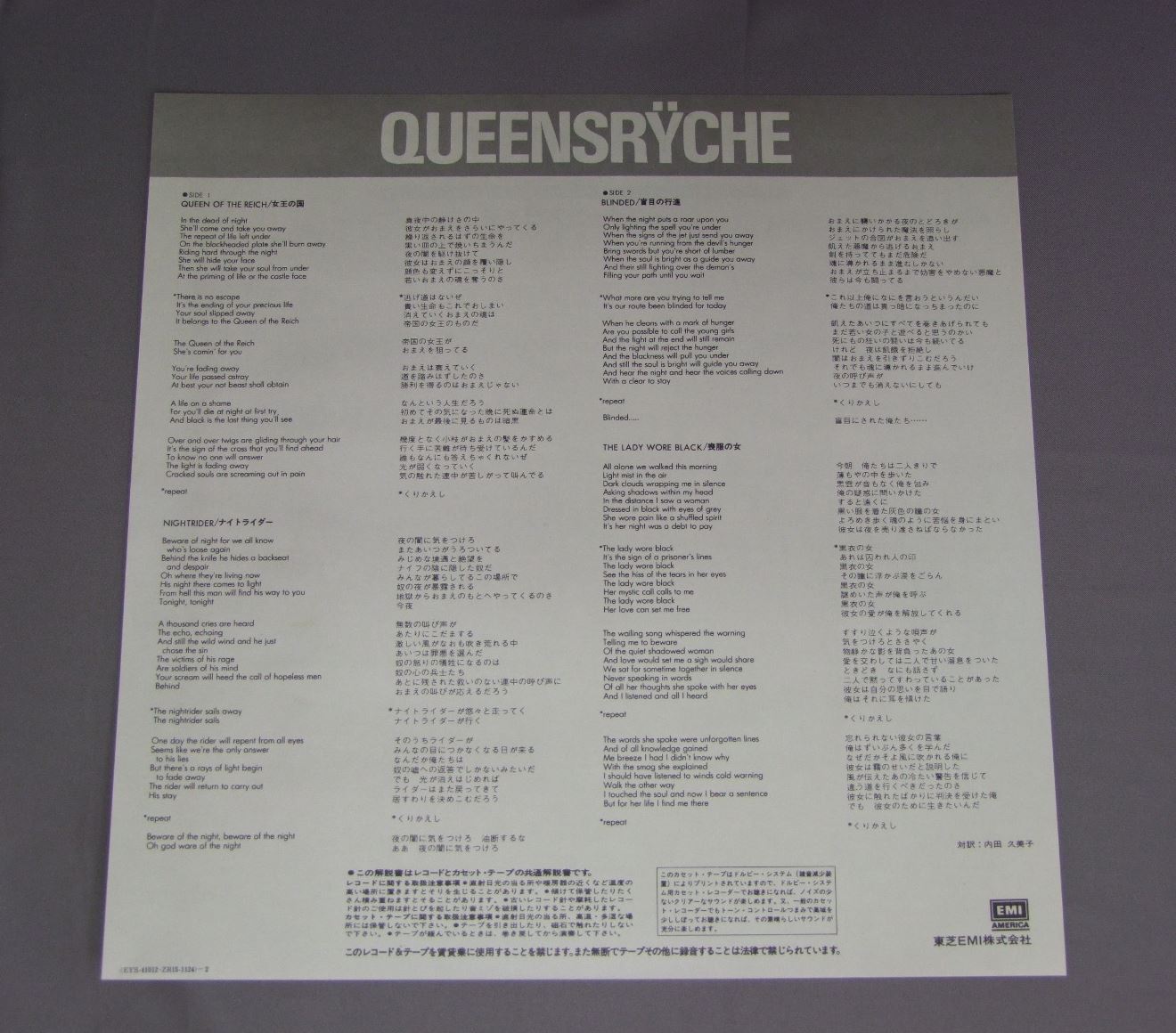 QUEENSRYCHEクイーンズライチ/SAME TITLE1st ALBUM EYS41012 製造国:日本盤 / Media:LP外観:EX+盤の状態:EX+帯:EX+ 価格(税込):¥2,783(売約済) 送料 7inch:定形外郵便 360円~LP:定形外郵便 660円~送料は、注文の最終画面で確認頂けます。 > > QUEENSRYCHE/SAME TITLE 外観 (EX+)特記事項:特記なし。外観EX+の共通説明:中古としては美品、一見してきれいでダメージが軽微。シミ、ヨゴレ、スレ有っても僅か~少し。 盤の状態 (EX+)特記事項:極薄いスリキズ・スレ少し。一見してきれいな状態です。盤EX+の共通説明:盤面の極薄いスリキズ、スレ少し程度 音に出そうなものは無いように見える(極軽微なソフトティック音は除く)。 帯の状態 (EX+):特記なし。 Tweet それぞれの画像をクリックすると、大きい写真が見られます こちらの商品もお勧めです 1,320円 NIGHT RANGERナイト・レンジャー / MIDNIGHT MADNESSミッドナイト・マッドネス 770円 IAN GILLAN BANDイアン・ギラン・バンド / LIVE AT THE BUDOKANライブ・イン・ジャパン 770円 IAN GILLAN BANDイアン・ギラン・バンド / LIVE AT THE BUDOKAN VOL2ライブ・イン・ジャパン VOL2 660円 ANGELエンジェル / ANGEL 770円 TED NUGENTテッド・ニュージェント / DOUBLE LIVE GONZO絶叫のライブ・ゴンゾー 1,210円 TYGERS OF PAN TANGタイガース・オブ・パンタン / CAGE危険なパラダイス 1,320円 MICHAEL SCHENKER GROUPマイケル・シェンカー・グループ / 1st ALBUM神(帰ってきたフライング・アロウ 770円 NIGHT RANGERナイト・レンジャー / MIDNIGHT MADNESSミッドナイト・マッドネス