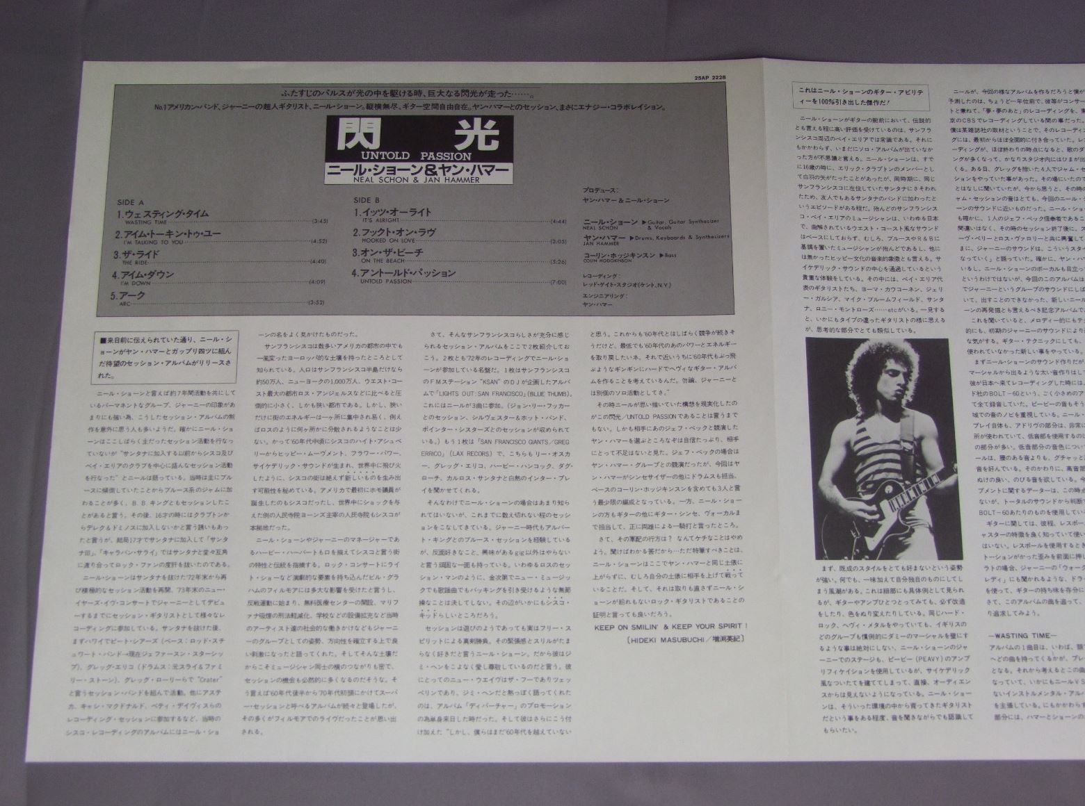 NEAL SCHON 6JAN HAMMERニール・ショーン&ヤン・ハマー/UNTOLD PASSION閃光 25AP2228 製造国:日本盤 / Media:LP外観:EX+盤の状態:EX+帯:EX+ 価格(税込):¥1,650(売約済) 送料 7inch:定形外郵便 360円~LP:定形外郵便 660円~送料は、注文の最終画面で確認頂けます。 > > NEAL SCHON 6JAN HAMMER/UNTOLD PASSION 外観 (EX+)特記事項:特記なし。外観EX+の共通説明:中古としては美品、一見してきれいでダメージが軽微。シミ、ヨゴレ、スレ有っても僅か~少し。 盤の状態 (EX+)特記事項:極薄いスリキズ・スレ少し。一見してきれいな状態です。盤EX+の共通説明:盤面の極薄いスリキズ、スレ少し程度 音に出そうなものは無いように見える(極軽微なソフトティック音は除く)。 帯の状態 (EX+):特記なし。 Tweet それぞれの画像をクリックすると、大きい写真が見られます こちらの商品もお勧めです 770円 MONEYマネー / FIRST INVESTMENT誘惑の掟 1,210円 NIGHT RANGERナイト・レンジャー / MIDNIGHT MADNESSナイト・レンジャー 1,320円 RUSSIA露西亜 / RUSSIA露西亜 `ペテルスブルグ炎上` 2,200円 KEELキール / FINAL FRONTIERファイナル・フロンティア 2,200円 HARDCHOIRハードクワイア / HARDCHOIR WLP華麗なる戦慄 770円 NIGHT RANGERナイト・レンジャー / DAWN PATROL緊急指令 660円 ANGELエンジェル / ANGEL 1,320円 NIGHT RANGERナイト・レンジャー / MIDNIGHT MADNESSミッドナイト・マッドネス