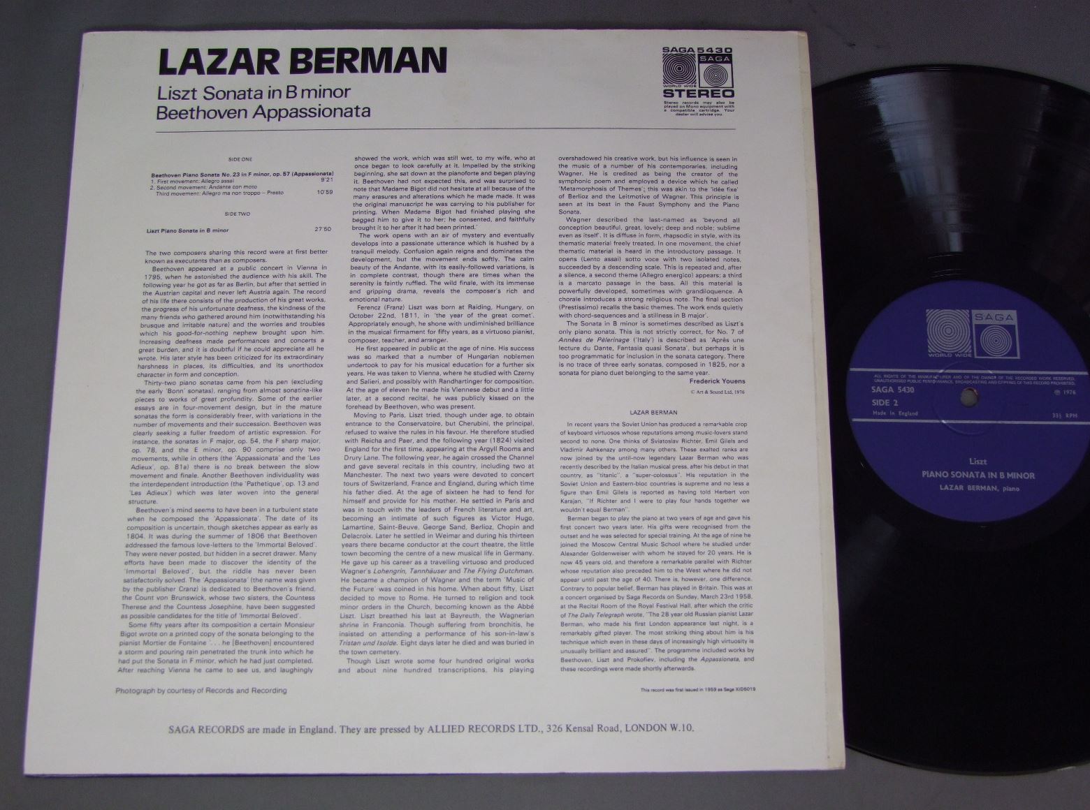 ラザール・ベルマン/リスト・Pソナタ SAGA5430 製造国:英国盤 / Media:LP外観:EX+盤の状態:EX 価格(税込):¥660(売約済) 送料 7inch:定形外郵便 360円~LP:定形外郵便 660円~送料は、注文の最終画面で確認頂けます。 > > / 外観 (EX+)特記事項:特記なし。外観EX+の共通説明:中古としては美品、一見してきれいでダメージが軽微。シミ、ヨゴレ、スレ有っても僅か~少し。 盤の状態 (EX)特記事項:薄いスリキズ・スレ軽くある感じ。殆どが軽微なものの様子です。盤EXの共通説明:盤面のスリキズが薄いものが少し~軽度 音に出そうなものは無いように見える(軽微なソフトティック音は除く)。 Tweet それぞれの画像をクリックすると、大きい写真が見られます こちらの商品もお勧めです 990円 AURIACOMBE / TELEMANN-CONCERTI FOR 2 990円 BLUM / MOZART-DIVERTIMENTOS 1,320円 R.KIRKPATRICK / BACH - KONZERTE 1,320円 KUIJKEN / TELEMANN/THE TWELVE FANTASIAS 1,320円 ADORJAN-STADLMAIRアドリヤン-シュタートルマイヤー / DANZI-KONZERTEダンツィ-フルート協奏曲 全4曲 880円 PER OIEN / NORWEGIAN FLUTE 1,430円 GURER AYKAL SUNAKAN / BACH CONC. FOR VIOLIN 990円 MENUHIN / HANDEL-MUSIC FOR THE ROYAL FIREWORKS