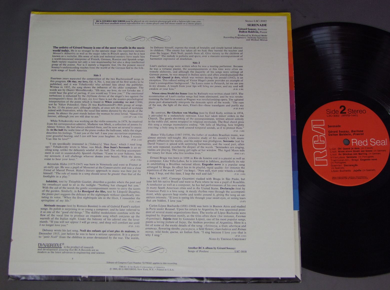 Gerard Souzay-Baritone/SERENADE LSC3082 製造国:米国盤 / Media:LP外観:EX+盤の状態:EX 価格(税込):¥550(売約済) 送料 7inch:定形外郵便 360円~LP:定形外郵便 660円~送料は、注文の最終画面で確認頂けます。 > > Gerard Souzay-Baritone/SERENADE 外観 (EX+)特記事項:特記なし。外観EX+の共通説明:中古としては美品、一見してきれいでダメージが軽微。シミ、ヨゴレ、スレ有っても僅か~少し。 盤の状態 (EX)特記事項:薄いスリキズ・スレ軽くある感じ。一見してきれいな印象です。盤EXの共通説明:盤面のスリキズが薄いものが少し~軽度 音に出そうなものは無いように見える(軽微なソフトティック音は除く)。 その他:表ジャケのロゴにステッカー貼有り。 Tweet それぞれの画像をクリックすると、大きい写真が見られます こちらの商品もお勧めです 1,320円 JOAN SUTHERLAND / BELLINI-LA SONNAMBULA-HIGHLIGHTS 990円 CHRISTA LUDWIG / CHRISTA LUDWIG OPERA RECITAL 2,750円 SEEFRIED-FRICSAY ETC / NOZZE DI FIGARO 1,980円 HELGE ROSWAENGE / SINGT AUS OPERN 990円 DAVIS / VERDI-UN BALLO IN MASCHERA 990円 SCHMEIDEL / MOZART-MASS -DIXIT ET MAGNIFICAT 1,650円 BIRGIT NILSSON / SINGS WAGNER 990円 SPENCER M. RICE-BURTON WEAVER etc / FOR ALL THE SAINTS