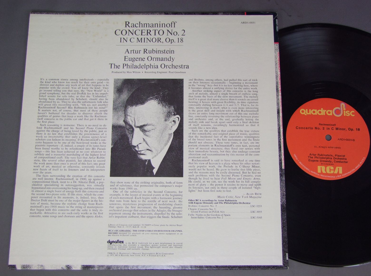 RUBINSTEIN ORMANDY/RACHMANINOFF NO.2 ARD1-0031 製造国:米国盤 / Media:LP外観:EX盤の状態:EX- 価格(税込):¥1,100(売約済) 送料 7inch:定形外郵便 360円~LP:定形外郵便 660円~送料は、注文の最終画面で確認頂けます。 > > RUBINSTEIN ORMANDY/RACHMANINOFF NO.2 外観 (EX)特記事項:裏ジャケにシミ。外観EXの共通説明:ダメージが限定的。中古品としては保存状態がよい方。シミ、ヨゴレ、スレ 少し~軽度。 盤の状態 (EX-)特記事項:薄いスリキズ・細かい表面スレ軽くある感じです。プチ出そうな所は少し。軽微なものが中心の様子です。盤EX-の共通説明:盤面のスリキズが多少有り。音に出そうなものは殆ど無いように見える~さほど気にならないぐらいの軽いプチ数カ所程度。 Tweet それぞれの画像をクリックすると、大きい写真が見られます こちらの商品もお勧めです 1,650円 BERNSTEIN / TSCHAIKOWSKY-ROMEO UND JULIA 1,430円 ANSERMET / ROSSINI-RESPIGHI-LA BOUTIQUE FANTASQUE 990円 BOSKOVSKY - VIENNA PHILHARMONIC / NEW YEAR`S IN VIENNA 990円 SIR CHARLES STALEY / BEETHOVEN-SYM. NO4 1,430円 OTTO ACKERMANN / GYPSY BARON 1,430円 SCHURICHTカール・シューリヒト / MENDELSSOHN OVERTURESフィンガルのどうくつ -メンデルスゾーン名演集- 1,540円 BOULT / ELGAR-THE DREAM OF GERONTIUS 990円 ORMANDY / OFFENBACH-GAITE PARISIENNE BALLET