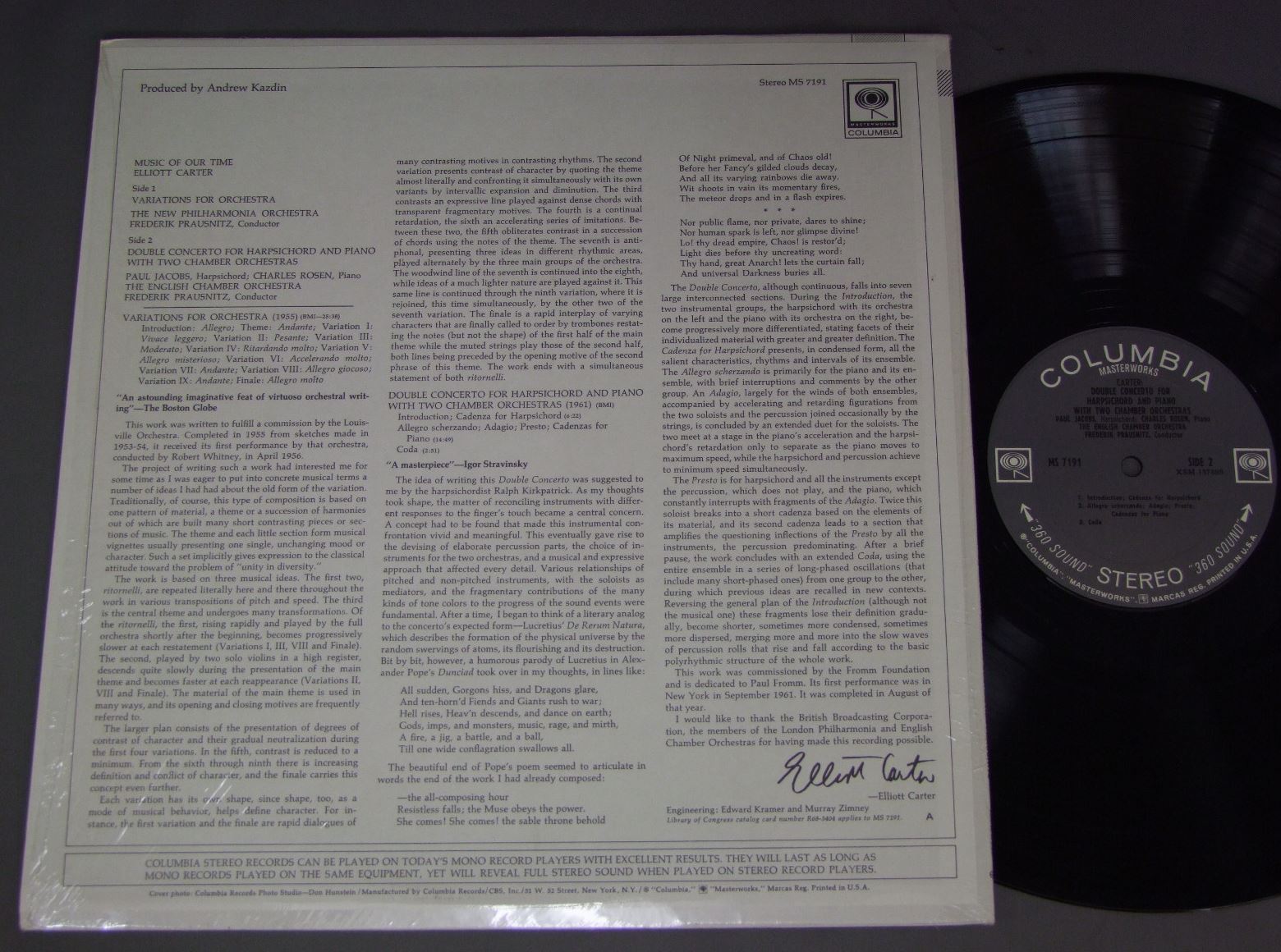 Elliott Carter/Variations For Orchestra 2EYE COLUMBIA MS7191 製造国:米国盤 / Media:LP外観:EX+盤の状態:EX+ 価格(税込):¥1,540(売約済) 送料 7inch:定形外郵便 360円~LP:定形外郵便 660円~送料は、注文の最終画面で確認頂けます。 > > Elliott Carter/Variations For Orchestra 2EYE 外観 (EX+)特記事項:特記なし。外観EX+の共通説明:中古としては美品、一見してきれいでダメージが軽微。シミ、ヨゴレ、スレ有っても僅か~少し。 盤の状態 (EX+)特記事項:薄いスリキズ・スレ少し。一見してきれいな状態です。盤EX+の共通説明:盤面の極薄いスリキズ、スレ少し程度 音に出そうなものは無いように見える(極軽微なソフトティック音は除く)。 Tweet それぞれの画像をクリックすると、大きい写真が見られます こちらの商品もお勧めです 1,430円 AKEO WATANABE / ELIAS TANENBAUM/CHARLES WUORINENエリアス・タネンバウム/チャールズ・ウォリネン 2,860円 BOHM-DIESKAU / BERG-WOZZECK 1,650円 KLEIBER-MIROPOULOS / BERG TRE PEZZI DA `WOZZECK` 2,200円 SCHONBERGアーノルト・シェーンベルク / ARNOLD SCHONBERGアーノルト・シェーンベルク 1,430円 JASALLE Q-AMADEUS Q / WIEN 1885-1910 SCHOENBERG-BERG-WEBERN 3LP BOX 990円 ULSTER ORCH.-THOMSON / BAX-TONE POEMS-NOVEMBER WOODS etc. 1,760円 NED ROREMネッド・ロアム / POEMS OF LOVE & THE RAIN-SECOND PIANO SONATA 990円 GEOFFREY BURGON - CHOIR OF CHICHESTER CATHEDRAL / CATHEDRAL MUSIC