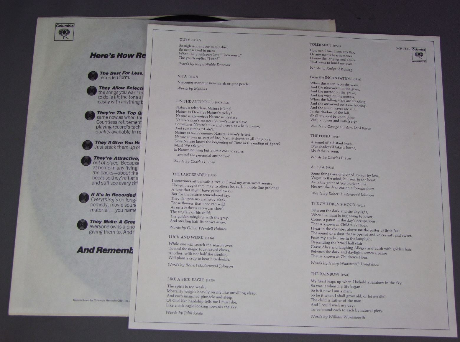 Charles Ives/Seventeen First Recordings COLUMBIA MS7321 製造国:米国盤 / Media:LP外観:EX+盤の状態:EX 価格(税込):¥880(売約済) 送料 7inch:定形外郵便 360円~LP:定形外郵便 660円~送料は、注文の最終画面で確認頂けます。 > > Charles Ives/Seventeen First Recordings 外観 (EX+)特記事項:特記なし。外観EX+の共通説明:中古としては美品、一見してきれいでダメージが軽微。シミ、ヨゴレ、スレ有っても僅か~少し。 盤の状態 (EX)特記事項:薄いスリキズ・スレ軽くある感じ。殆どが軽微なものの様子です。盤EXの共通説明:盤面のスリキズが薄いものが少し~軽度 音に出そうなものは無いように見える(軽微なソフトティック音は除く)。 Tweet それぞれの画像をクリックすると、大きい写真が見られます こちらの商品もお勧めです 1,650円 OISTRAKH-HINDEMITH-ABBADO / HAIDEMITH VIOLIN CONC. 1,650円 ROBERT WARD LESTER TRIMBLE ETC / WARD TRIMBLE BEZANSON GOODENOUGH 880円 FRANZ KOCH-PROFESSOR HAEFNER / HINDEMITH-CONCERTMUSIC FOR BRASS&STRINGS 2,200円 ABBADO / BERG `LULU`SUITE ALTENBERG LIEDER THREE PIECES FOR ORCH. 1,760円 JUNKO UKIGAYA/HORST GOBEL / CHANT DE LIONS 1,980円 BOULT / WALTON-SYM. 1935 2,090円 FASSBAENDER-REIMANN / SCHONBERG-DAS BUCH DER HANGENDEN GARTEN 1,760円 ROBERT CRAFT / MUSIC OF ARNOLD SCHOENBERG. VOL3