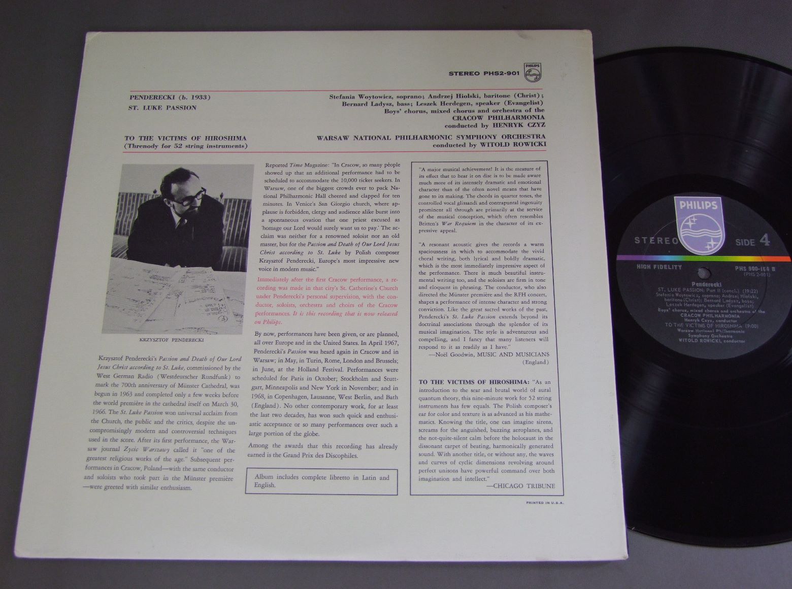 Pendereckiペンデレツキ/VICTIMS HIROSHIMA広島の犠牲者に捧げる哀歌 PHS2901 製造国:オランダ盤 / Media:LP外観:EX盤の状態:EX+ 価格(税込):¥1,540(売約済) 送料 7inch:定形外郵便 360円~LP:定形外郵便 660円~送料は、注文の最終画面で確認頂けます。 > > Penderecki/VICTIMS HIROSHIMA 外観 (EX)特記事項:裏ジャケ側に天抜け有。外観EXの共通説明:ダメージが限定的。中古品としては保存状態がよい方。シミ、ヨゴレ、スレ 少し~軽度。 盤の状態 (EX+)特記事項:極薄いスリキズ・スレ少し。一見してきれいな状態です。盤EX+の共通説明:盤面の極薄いスリキズ、スレ少し程度 音に出そうなものは無いように見える(極軽微なソフトティック音は除く)。 Tweet それぞれの画像をクリックすると、大きい写真が見られます こちらの商品もお勧めです 990円 SCHUYLER SYM. ORCH. / SCHONBERG/TRANSFIGURED NIGHT OPUS4(VERKLARTE NACHT) etc 1,870円 SIR COLIN DAVIS / BRITTEN-TURN OF THE SCREW 770円 JUILLIARD QT / COPLAND Chamber Music未開封 1,320円 TREIGLE-RUDEL / BOITO-MEFISTOFELEボイト メフィストフェレ 1,320円 SIR ARTHUR BLISS / BLISS-A COLOUR SYM.-INTRODUCTION&ALLEGRO 2,090円 FASSBAENDER-REIMANN / SCHONBERG-DAS BUCH DER HANGENDEN GARTEN 1,540円 AULOS BLASER QUINTET / JOLVET PIERNE FRANCAIX 1,650円 ARTHUR WINOGRAD / SCHONBERG・PIERROT LUNAIRE 1