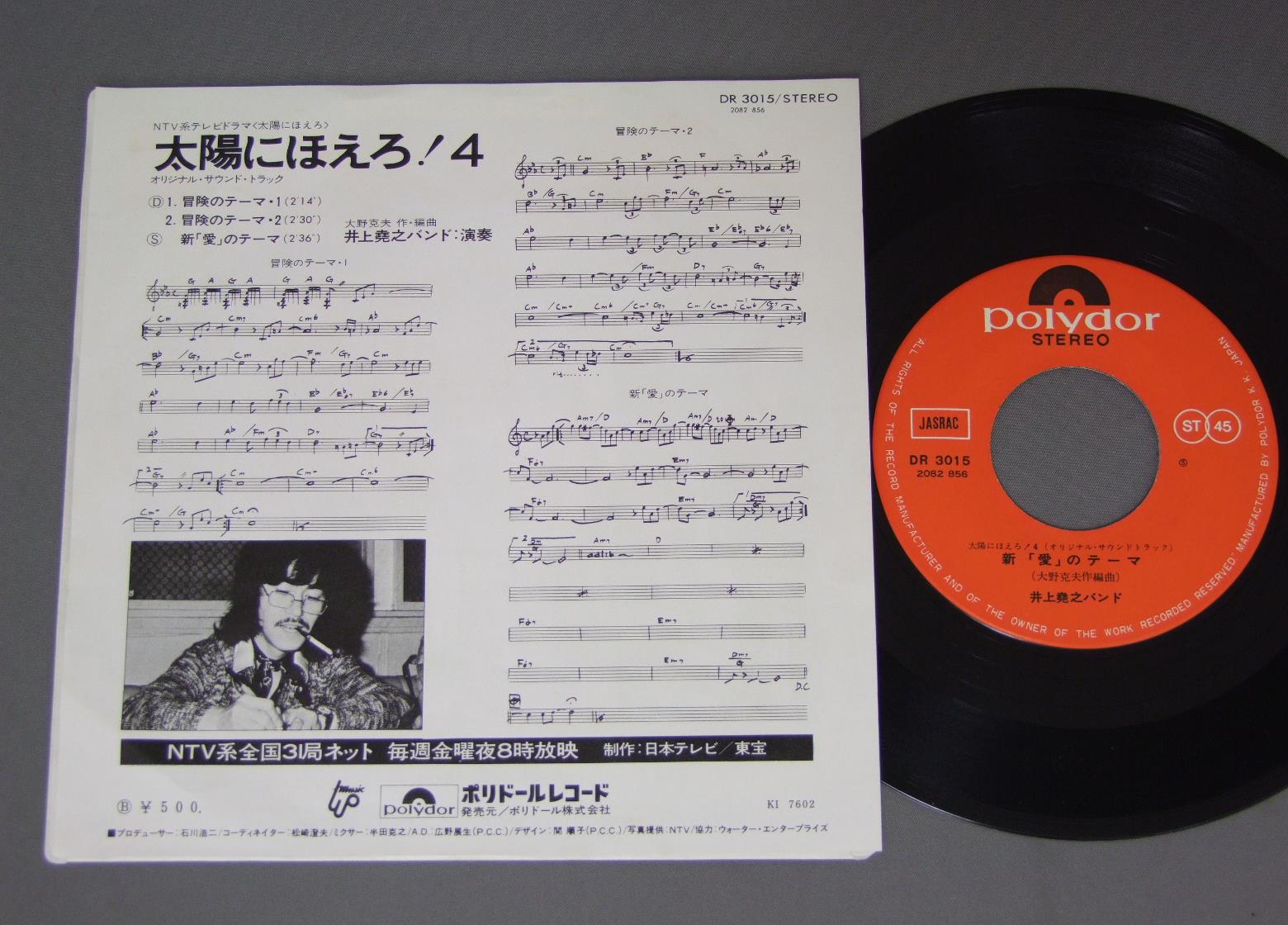TAKAYUKI INOUE井上堯之バンド/TAIYOUNI HOERO 4ドラマ「太陽にほえろ4」 冒険のテーマ1 DR3015 製造国:日本盤 / Media:7inch外観:EX盤の状態:EX+ 価格(税込):¥330 送料 7inch:定形外郵便 360円~LP:定形外郵便 660円~送料は、注文の最終画面で確認頂けます。 > > TAKAYUKI INOUE/TAIYOUNI HOERO 4 外観 (EX)特記事項:特記なし。外観EXの共通説明:ダメージが限定的。中古品としては保存状態がよい方。シミ、ヨゴレ、スレ 少し~軽度。 盤の状態 (EX+)特記事項:極薄いスリキズ・スレ少し。一見してきれいな状態です。盤EX+の共通説明:盤面の極薄いスリキズ、スレ少し程度 音に出そうなものは無いように見える(極軽微なソフトティック音は除く)。 Tweet それぞれの画像をクリックすると、大きい写真が見られます こちらの商品もお勧めです 770円 ORIGINAL SOUND TRACKオリジナル・サウンドトラック / SUPERMAN 2映画 スーパーマン2 冒険編 1,650円 MOMOE YAMAGUCHI & TOMOKAZU MIURA山口百恵と三浦友和 / WHITE LOVEホワイト・ラブ 1,650円 FRANCIS COPPOLAフランシス・コッポラ / SOUNDTRACK APOCALYPSE NOWサントラ 地獄の黙示録 770円 JOHN ADDISONジョン・アディスン監督 / SOUNDTRACK BRIDGE TOO FAR映画 遠すぎた橋 660円 RALPH BURNSラルフ・バーンズ / SOUND TRACK ALL THAT JAZZ映画オール・ザット・ジャズ 880円 TV SOUND TRACK2大刑事ドラマ / ORETACHINO KUNSHO俺たちの勲章-太陽にほえろ ! テレビ主題曲集 1,980円 HIROSHI AKUTAGAWA - TOKYO SYMPHONY ORCHESTRA芥川比呂志 - 東京交響楽団 / SOUNDTRACK SUNA-NO UTSUWA松竹映画 砂の器 550円 YUJIRO ISHIHARA石原裕次郎 / SOUND TRACK FROM NIKKATSU FILM想い出のスクリーン(日活映画サウンドトラックより)