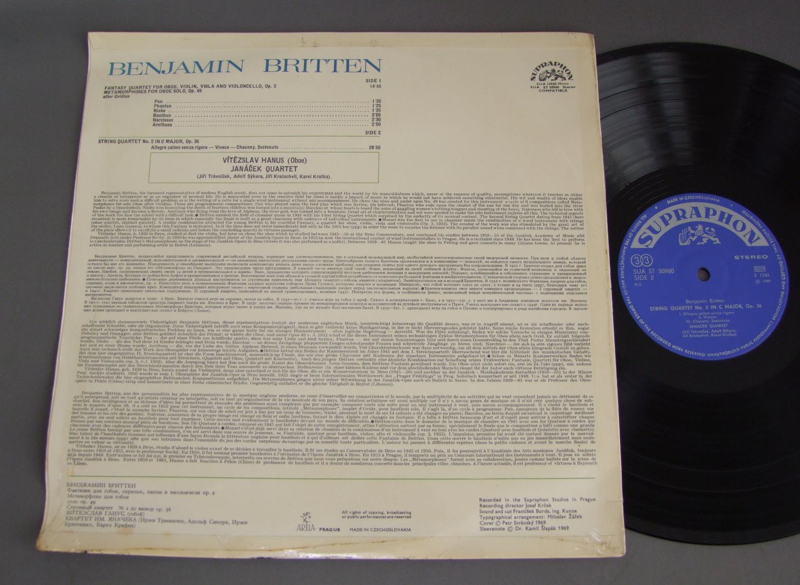 JANACEK QUARTET/BRITTEN SQ NO.2 SUAST50960 製造国:輸入盤 / Media:LP外観:EX盤の状態:EX+ 価格(税込):¥1,100(売約済) 送料 7inch:定形外郵便 360円~LP:定形外郵便 660円~送料は、注文の最終画面で確認頂けます。 > > JANACEK QUARTET/BRITTEN SQ NO.2 外観 (EX)特記事項:シュリンク袋が収縮して多少ジャケにヨレ有り。裏ジャケ側にシミが少し。外観EXの共通説明:ダメージが限定的。中古品としては保存状態がよい方。シミ、ヨゴレ、スレ 少し~軽度。 盤の状態 (EX+)特記事項:薄いスリキズ・スレ少し。一見してきれいな状態です。盤EX+の共通説明:盤面の極薄いスリキズ、スレ少し程度 音に出そうなものは無いように見える(極軽微なソフトティック音は除く)。 その他:チェコ盤 Tweet それぞれの画像をクリックすると、大きい写真が見られます こちらの商品もお勧めです 1,320円 R.KIRKPATRICK / BACH - KONZERTE 990円 PAUL ANGERER / ITALIAN BAROQUE WIND CONCERTI 1,650円 WILHELM EHMANN / BACH SCHWINGT FREUDIG EUCH EMPOR 1,430円 DORA GATTA - SALVATORE GIOIA / PAISIELLO - NINA OR LA PAZZA PER AMORE 990円 PETER BROCK (Fl) / MUSIK AUF SCHLOSS FAVORITE 2,090円 HARNONCOURTアーノンクール / HANDEL/CONCERTI GROSSI -CONC.S etcヘンデル/合奏協奏曲の8-12 他 990円 I NUOVI VIRTUOSI DI ROMA / VIVALDI-VIOLIN CONC. 990円 VIENNA PHILHARMONIC ORCH. / LONDON DIGITAL