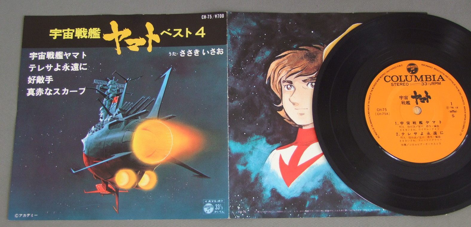 ANIME SPACE BATTLESHIP YAMATO宇宙戦艦ヤマト/BEST 4ベスト4 CH75 製造国:日本盤 / Media:7inch外観:EX盤の状態:EX- 価格(税込):¥550(売約済) 送料 7inch:定形外郵便 360円~LP:定形外郵便 660円~送料は、注文の最終画面で確認頂けます。 > > ANIME SPACE BATTLESHIP YAMATO/BEST 4 外観 (EX)特記事項:特記なし。外観EXの共通説明:ダメージが限定的。中古品としては保存状態がよい方。シミ、ヨゴレ、スレ 少し~軽度。 盤の状態 (EX-)特記事項:薄いスリキズ・細かい表面スレ軽くある感じ。全体的には殆どが軽微なものの様子です。盤EX-の共通説明:盤面のスリキズが多少有り。音に出そうなものは殆ど無いように見える~さほど気にならないぐらいの軽いプチ数カ所程度。 Tweet それぞれの画像をクリックすると、大きい写真が見られます こちらの商品もお勧めです 550円 ANIME LOCKE THE SUPERMANタリスマン / TIGER OF FIREアニメ「超人ロック」炎の虎 1,210円 ANIME MAGICAL PRINCESS MINKY MOMOアニメ 魔法のプリンセス ミンキーモモ / I`LL SEE YOU IN MY DREAMSドラマ篇 夢で逢いましょう 770円 TV ANIME AIM FOR THE ACEアニメ エースをねらえ ! / VOL2新エースをねらえ ! 1,320円 ANIME SPACE PIRATE CAPTAIN HARLOCK宇宙海賊 キャプテン・ハーロック / TV SOUNDTRACK交響組曲 テレビ・サウンドトラック盤 770円 CRUSHER JOEクラッシャージョウ / SOUND TRACK音楽篇 1,980円 手塚治虫 / 手塚治虫の世界 1,210円 ANIME MACROSSマクロス / MISS DJテレビドラマ篇 1,650円 ANIME SYBORG 009アニメ サイボーグ009 / TV ORIGINAL SOUNDTRACKテレビ・オリジナル・サウンドトラック