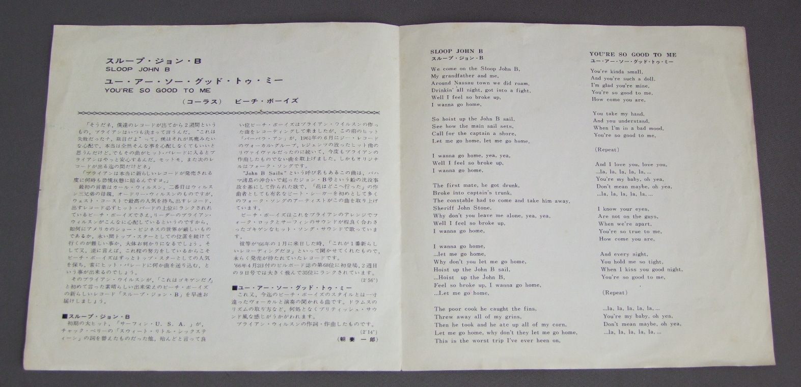 BEACH BOYSビーチ・ボーイズ/SLOOP JOHN Bスループ・ジョン・B CR1512 製造国:日本盤 / Media:7inch外観:EX-盤の状態:EX- 価格(税込):¥2,200(売約済) 送料 7inch:定形外郵便 360円~LP:定形外郵便 660円~送料は、注文の最終画面で確認頂けます。 > > BEACH BOYS/SLOOP JOHN B 外観 (EX-)特記事項:ヨレやや有り。裏ジャケにスレよごれ。見開きに薄いシミが少し。外観EX-の共通説明:ダメージ軽度~多少。 中古品としては普通の状態。シミ、ヨゴレ、スレなど軽く~多少。 盤の状態 (EX-)特記事項:薄いスリキズ・細かい表面スレ多少ある感じ。殆どが軽微なものの様子です。盤EX-の共通説明:盤面のスリキズが多少有り。音に出そうなものは殆ど無いように見える~さほど気にならないぐらいの軽いプチ数カ所程度。 Tweet それぞれの画像をクリックすると、大きい写真が見られます こちらの商品もお勧めです 1,210円 BEACH BOYSビーチ・ボーイズ / BEACH BOYSビーチ・ボーイズ