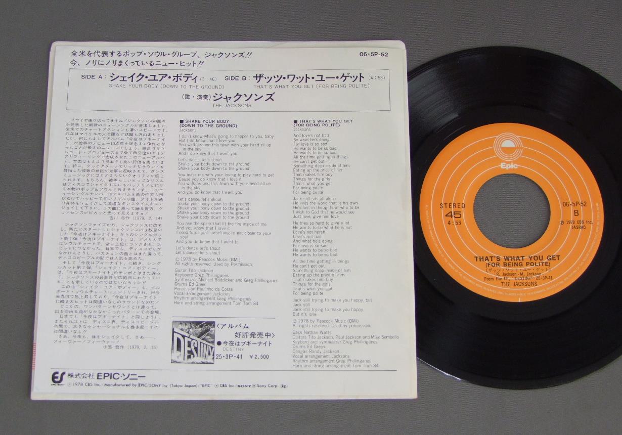 JACKSONSジャクソンズ/SHAKE YOUR BODY(DOWN TO THE GROUND)シェイク・ユア・ボディ 06・5P52 製造国:日本盤 / Media:7inch外観:EX+盤の状態:EX+ 価格(税込):¥1,100(売約済) 送料 7inch:定形外郵便 360円~LP:定形外郵便 660円~送料は、注文の最終画面で確認頂けます。 > > JACKSONS/SHAKE YOUR BODY(DOWN TO THE GROUND) 外観 (EX+)特記事項:特記なし。外観EX+の共通説明:中古としては美品、一見してきれいでダメージが軽微。シミ、ヨゴレ、スレ有っても僅か~少し。 盤の状態 (EX+)特記事項:極薄いスリキズ・スレ少し。一見してきれいな状態です。盤EX+の共通説明:盤面の極薄いスリキズ、スレ少し程度 音に出そうなものは無いように見える(極軽微なソフトティック音は除く)。 Tweet それぞれの画像をクリックすると、大きい写真が見られます こちらの商品もお勧めです 1,320円 CAROL DOUGLASキャロル・ダグラス / CAROL DOUGLAS ALBUM恋の診断書-恋のハリケーン 1,210円 TEDDY PENDERGRASSテディ・ペンダーグラス / TEDDY LIVE ! COAST TO COASTライブ!コースト・トゥ・コースト 440円 STEVIE WONDERスティービー・ワンダー / SOUNDTRACK THE WOMAN IN REDウーマン・イン・レッド 1,650円 OHIO PLAYERS / BACK 1,320円 DIANA ROSSダイアナ・ロス / ROSSロス 1,210円 TEMPTATIONSテンプテーションズ / TO BE CONTINUEDトゥ・ビー・コンティニュード 1,210円 JERMAINE JACKSONジャーメイン・ジャクソン / LET`S GET SERIOUSレッツ・ゲット・シーリアス 1,210円 VAN McCOYバン・マッコイ / MY FEVORITE FANTASYマイ・フェバリット・ファンタジー