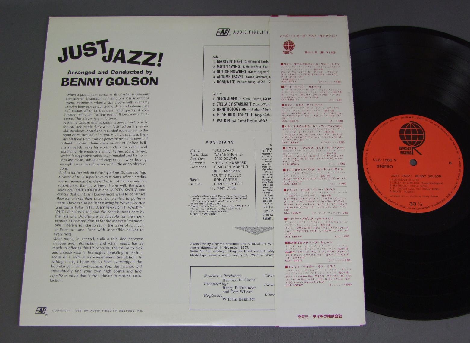 BENNY GOLSONベニー・ゴルソン/JUST JAZZ!ジャスト・ジャズ ULS1866V 製造国:日本盤 / Media:LP外観:EX+盤の状態:EX+帯:EX 価格(税込):¥1,320(売約済) 送料 7inch:定形外郵便 360円~LP:定形外郵便 660円~送料は、注文の最終画面で確認頂けます。 > > BENNY GOLSON/JUST JAZZ! 外観 (EX+)特記事項:特記なし。外観EX+の共通説明:中古としては美品、一見してきれいでダメージが軽微。シミ、ヨゴレ、スレ有っても僅か~少し。 盤の状態 (EX+)特記事項:薄いスリキズ・スレ少し。一見してきれいな状態です。盤EX+の共通説明:盤面の極薄いスリキズ、スレ少し程度 音に出そうなものは無いように見える(極軽微なソフトティック音は除く)。 帯の状態 (EX):特記なし。 Tweet それぞれの画像をクリックすると、大きい写真が見られます こちらの商品もお勧めです 770円 HERBIE MANNハービー・マン / HOLD ON. I`M COMIN`ホールド・オン 770円 BENNY GOODMANベニー・グッドマン他 / MR BENNY GOODMAN (BENNY GOODMAN STORY)映画ベニー・グッドマン物語 1,320円 RICHIE COLEリッチー・コール / ALIVE !アライヴ ! 440円 SADAO WATANABE渡辺貞夫 / MORNING ISLANDモーニング・アイランド 770円 NORIO MAEDA前田憲男 / FEELINGSフィーリング 770円 ERROLL GARNER-ARCHIE SHEPP etc / SAVOY 100 ALUMS-SPECIAL MENUサヴォイ・スペシャル・メニュー 660円 JACQUES LOUSSIERジャック・ルーシェ / PLAY BACHプレイ・バッハ 990円 JOSHUA RIFKINジョシュア・リフキン / PIANO RAGS BY SCOTT JOPLINスコット・ジョプリンの芸術