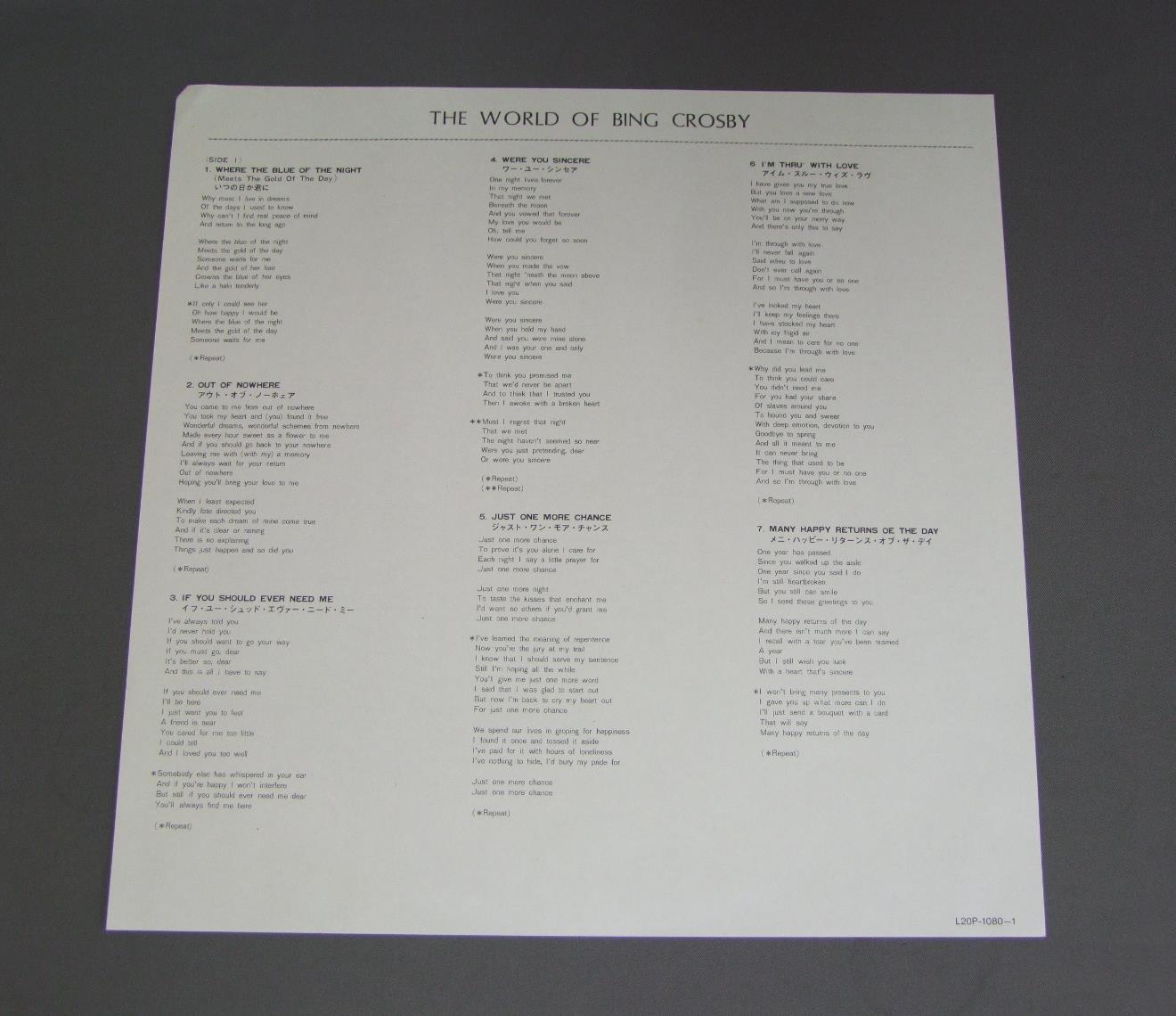 BING CROSBYビング・クロスビー/WORLD OF BING CROSBYワールド・オブ・ビング・クロスビー L20P1080 製造国:日本盤 / Media:LP外観:EX+盤の状態:EX+帯:EX+ 価格(税込):¥660(売約済) 送料 7inch:定形外郵便 360円~LP:定形外郵便 660円~送料は、注文の最終画面で確認頂けます。 > > BING CROSBY/WORLD OF BING CROSBY 外観 (EX+)特記事項:特記なし。外観EX+の共通説明:中古としては美品、一見してきれいでダメージが軽微。シミ、ヨゴレ、スレ有っても僅か~少し。 盤の状態 (EX+)特記事項:薄いスリキズ・スレ少し。一見してきれいな状態です。盤EX+の共通説明:盤面の極薄いスリキズ、スレ少し程度 音に出そうなものは無いように見える(極軽微なソフトティック音は除く)。 帯の状態 (EX+):特記なし。 Tweet それぞれの画像をクリックすると、大きい写真が見られます こちらの商品もお勧めです 440円 BING CROSBYビング・クロスビー / BING CROSBY GOLDEN DISC追悼盤 1,320円 STEVE MARCH etcスティーブ・マーチ他 / SWINGスイング 990円 BILLIE HOLIDAYビリー・ホリデイ / BILLIE HOLIDAYビリー・ホリデイの魂 880円 YASUKO AGAWA阿川泰子 / FINE!気分はいかが 660円 PAUL ROBESONポール・ロブスン / PAUL ROBESON AT CARNEGIE HALLカーネギー・ホールのポール・ロブスン 1,320円 CLEO LAINEクレオ・レーン / AT THE WAVENDON FESTIVALジス・イズ・クレオ -クレオ・レーン・アット・ザ・ウェイヴンドン- 770円 SWINGLE SINGERSスイングル・シンガーズ / JAZZ SEBASTIEN BACHジャズ・セバスチャン・バッハ 770円 YUKARI KANEKO金子由香利 / BEST COLLECTIONベスト・コレクション