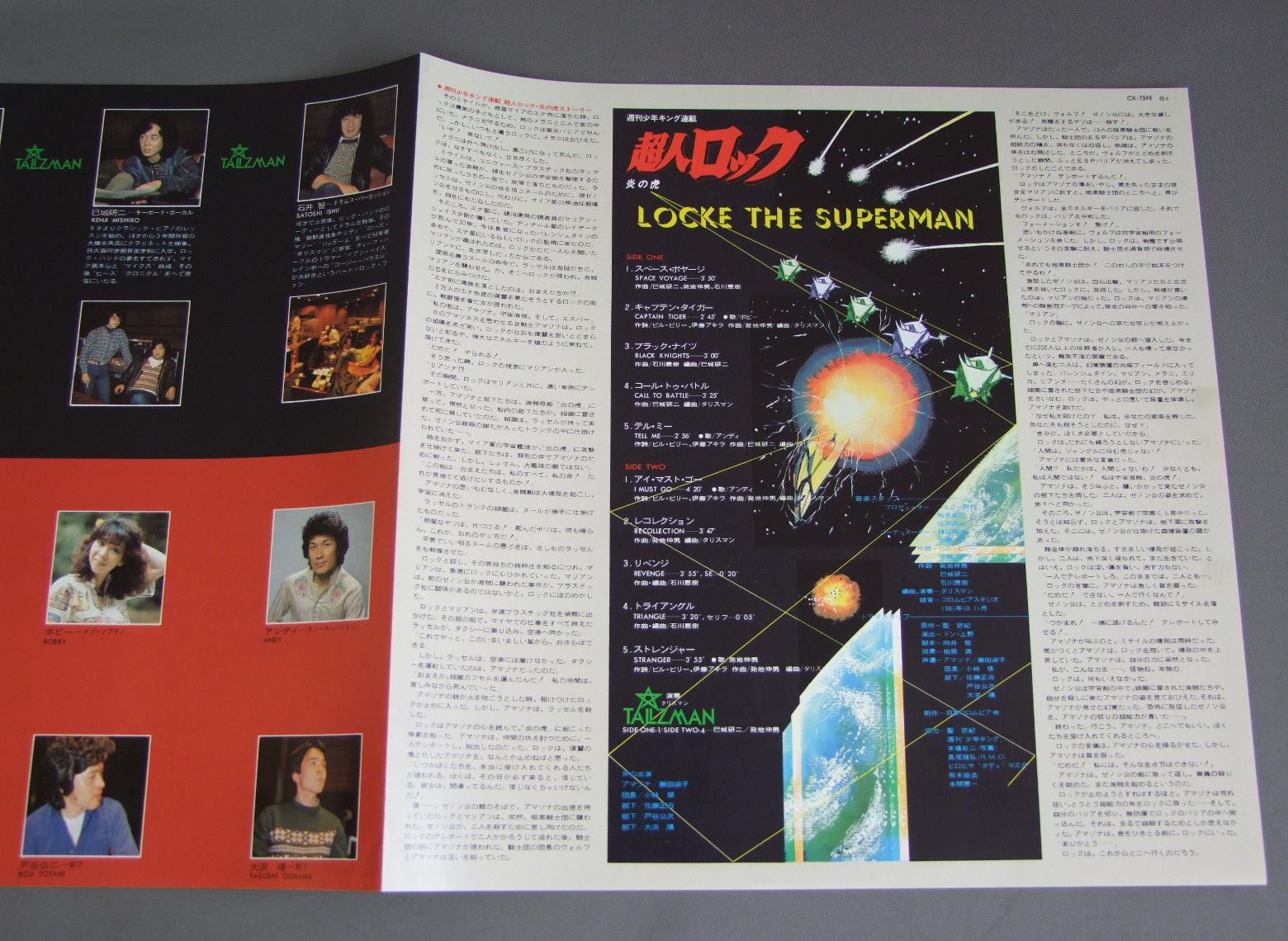 ANIME LOCKE THE SUPERMANタリスマン/TIGER OF FIREアニメ「超人ロック」炎の虎 CX7046 製造国:日本盤 / Media:LP外観:EX盤の状態:EX帯:EX 価格(税込):¥1,100(売約済) 送料 7inch:定形外郵便 360円~LP:定形外郵便 660円~送料は、注文の最終画面で確認頂けます。 > > ANIME LOCKE THE SUPERMAN/TIGER OF FIRE 外観 (EX)特記事項:特記なし。外観EXの共通説明:ダメージが限定的。中古品としては保存状態がよい方。シミ、ヨゴレ、スレ 少し~軽度。 盤の状態 (EX)特記事項:薄いスリキズ・スレ軽くある感じ。軽微なものの様子です。盤EXの共通説明:盤面のスリキズが薄いものが少し~軽度 音に出そうなものは無いように見える(軽微なソフトティック音は除く)。 帯の状態 (EX):特記なし。 Tweet それぞれの画像をクリックすると、大きい写真が見られます こちらの商品もお勧めです 1,210円 ANIME MACROSSマクロス / MISS DJテレビドラマ篇 770円 TV ANIME AIM FOR THE ACEアニメ エースをねらえ ! / VOL2新エースをねらえ ! 770円 CRUSHER JOEクラッシャージョウ / SYMPHONIC SUITE交響組曲 990円 SHOTARO ISHINOMORI石ノ森章太郎 / CYBORG 009サイボーグ009 770円 ROUND-VERNIAN VIFAM銀河漂流バイファム / SOUNDTRACK EXTRA EDITION音楽集・番外編 550円 AURA BATTLER DUNBINE聖戦士ダンバイン / ORIGINAL SOUND TRACKダンバイン2 1,650円 ANIME URUSEI YATSURA 3うる星やつら 3 / REMEMBER MY LOVEリメンバー・マイ・ラヴ 1,650円 ANIMEアニメ / CYBORG 009サイボーグ009