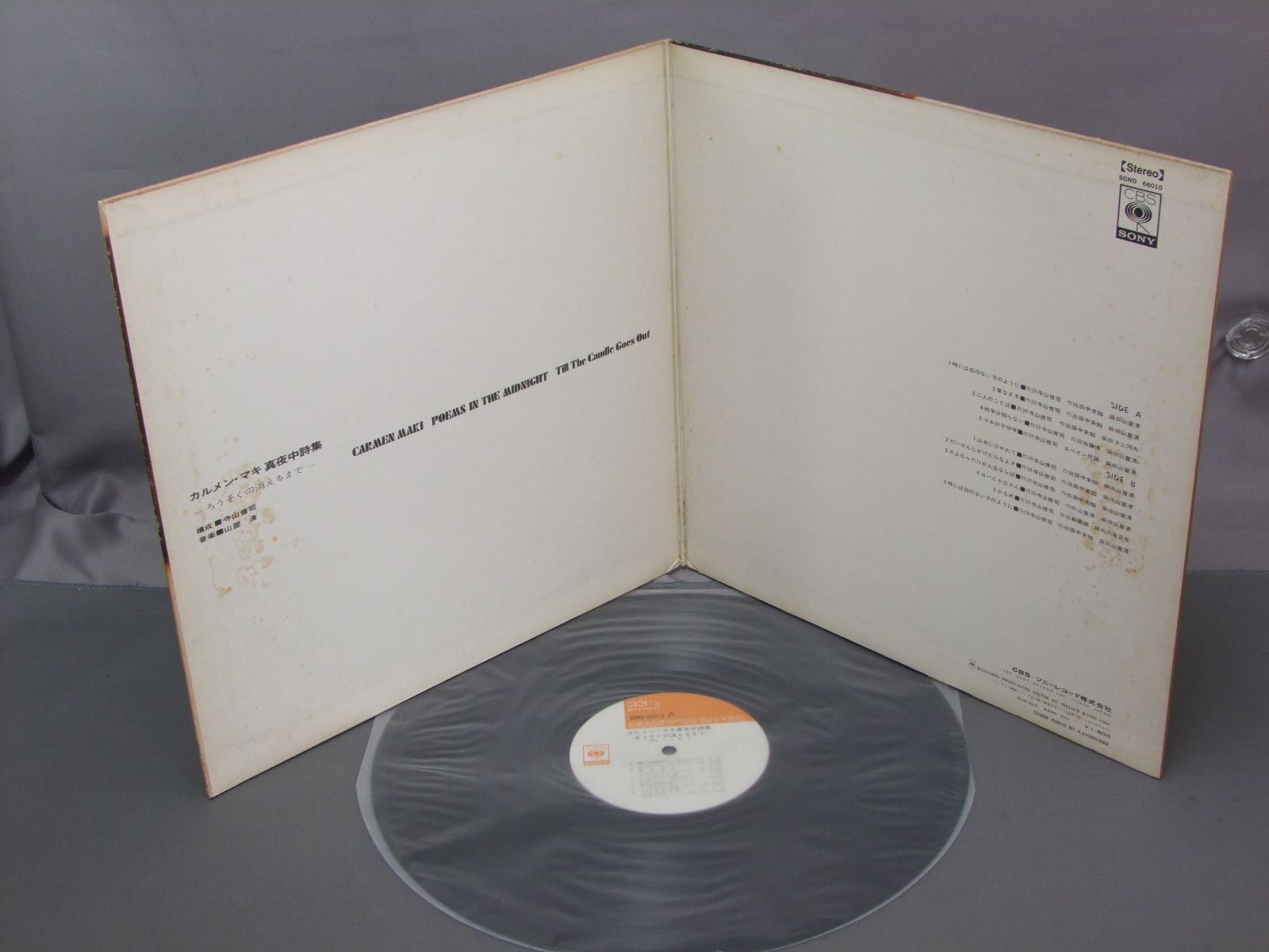 CARMEN MAKIカルメン・マキ/POEMS IN THE MIDNIGHT TILL THE CANDLE GOES OUTカルメン・マキ真夜中詩集 ろうそくの消えるまで SOND66010 製造国:日本盤 / Media:LP外観:VG盤の状態:EX 価格(税込):¥1,100(売約済) 送料 7inch:定形外郵便 360円~LP:定形外郵便 660円~送料は、注文の最終画面で確認頂けます。 > > CARMEN MAKI/POEMS IN THE MIDNIGHT TILL THE CANDLE GOES OUT 外観 (VG)特記事項:各ヘリスレやや有り。表ジャケはスレ大。裏ジャケ背側にスレ。見開きにシミ。外観VGの共通説明:ダメージが見るからに多い。 盤の状態 (EX)特記事項:薄いスリキズ・スレ軽くある感じ。軽微なものの様子です。盤EXの共通説明:盤面のスリキズが薄いものが少し~軽度 音に出そうなものは無いように見える(軽微なソフトティック音は除く)。 Tweet それぞれの画像をクリックすると、大きい写真が見られます こちらの商品もお勧めです 440円 MASASHI SADAさだまさし / YUME NO WADACHI夢の轍 770円 KUMIKO YAMASHITA山下久美子 / DANCIN` IN THE KITCHENダンシン・イン・ザ・キッチン 770円 TULIPチューリップ / NEW TUNE 770円 CHAGE & ASUKAチャゲ&飛鳥 / 4th ALBUN 21 CENTURY21世紀 880円 TULIPチューリップ / LIVE ACT TULIPライヴ アクト・チューリップ 770円 MANABU MIYAHARA宮原学 / READY STEADY GO 770円 TAKURO YOSHIDAよしだたくろう / HELLO! I`M TAKURO YOSHIDA元気です。 880円 ALFEEアルフィー / RENAISSANCEルネッサンス