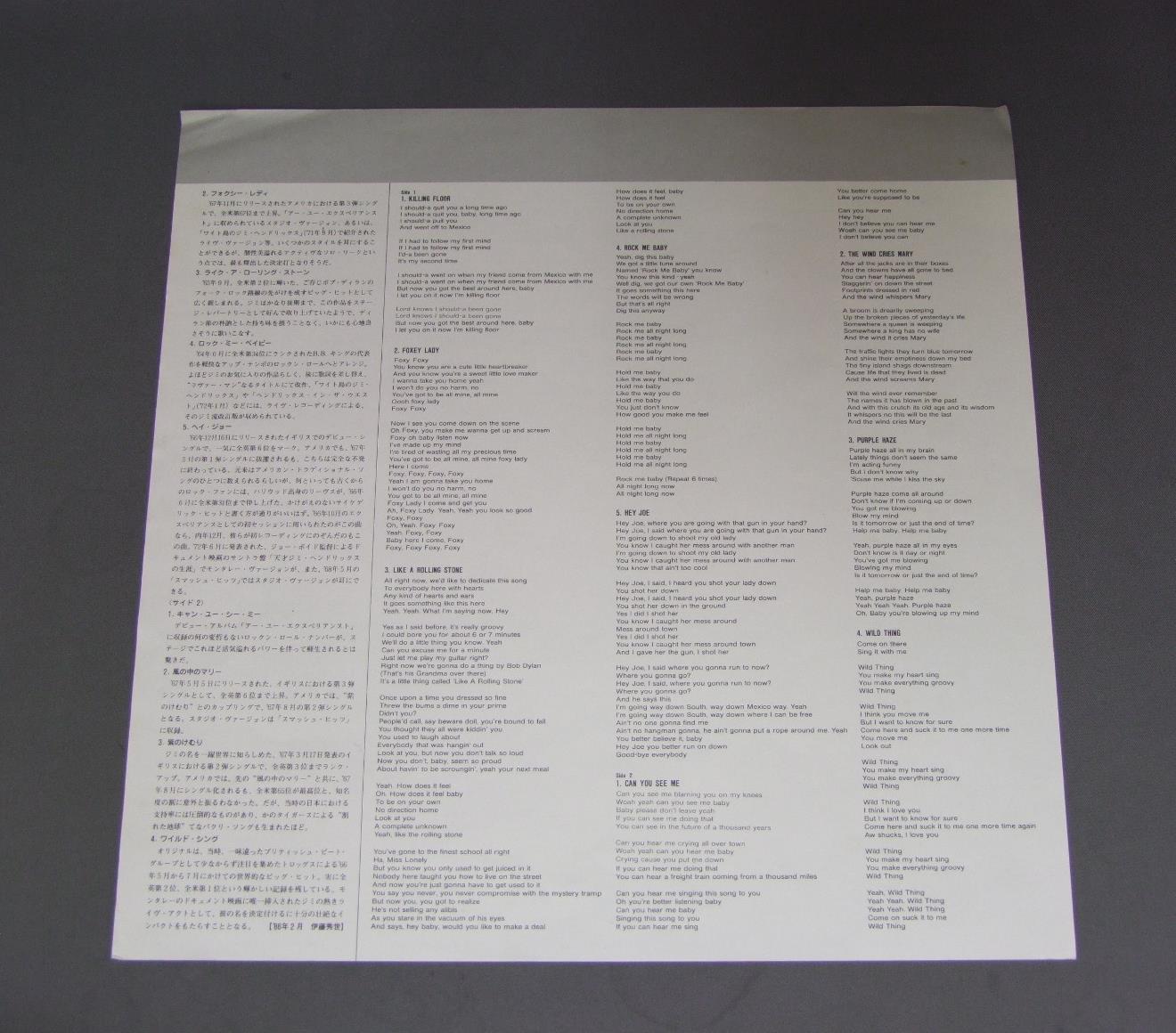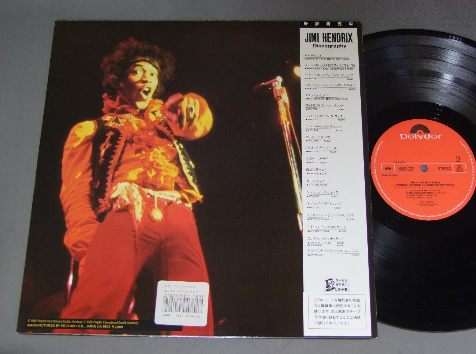 JIMI HENDRIXジミ・ヘンドリックス/JIMI PLAYS MONTEREY/ORIGINAL SOUND TRACKモンタレー・ポップ・フェスティヴァル・ライヴ 28MM0488 製造国:日本盤 / Media:LP外観:EX盤の状態:EX+帯:EX 価格(税込):¥1,980(売約済) 送料 7inch:定形外郵便 360円~LP:定形外郵便 660円~送料は、注文の最終画面で確認頂けます。 > > JIMI HENDRIX/JIMI PLAYS MONTEREY/ORIGINAL SOUND TRACK 外観 (EX)特記事項:特記なし。コンディションリストをご覧ください。外観EXの共通説明:ダメージが限定的。中古品としては保存状態がよい方。シミ、ヨゴレ、スレ 少し~軽度。 盤の状態 (EX+)特記事項:薄いスリキズ・スレ少し。一見してきれいな状態です。盤EX+の共通説明:盤面の極薄いスリキズ、スレ少し程度 音に出そうなものは無いように見える(極軽微なソフトティック音は除く)。 帯の状態 (EX):特記なし。コンディションリストをご覧ください。 Tweet それぞれの画像をクリックすると、大きい写真が見られます こちらの商品もお勧めです