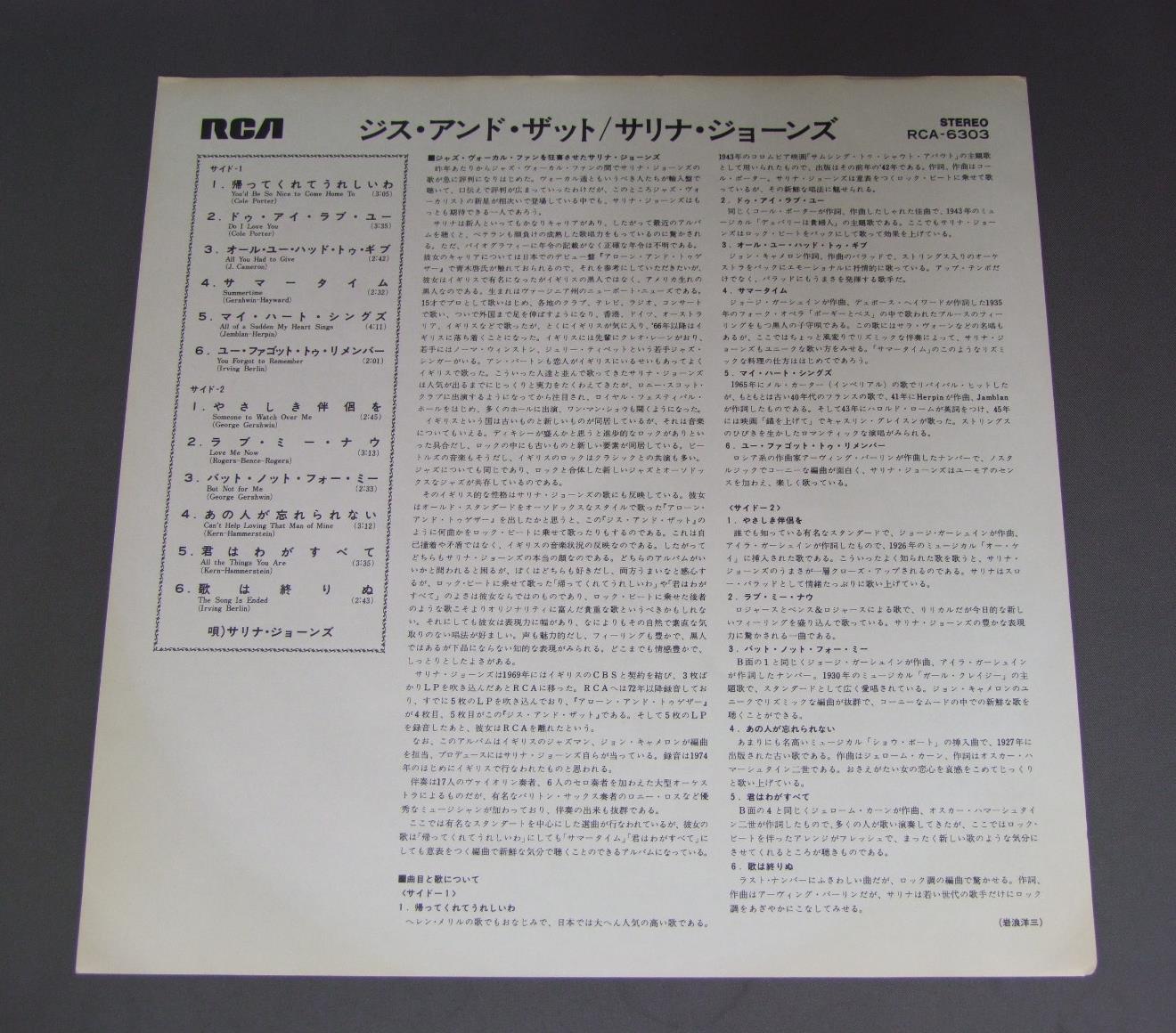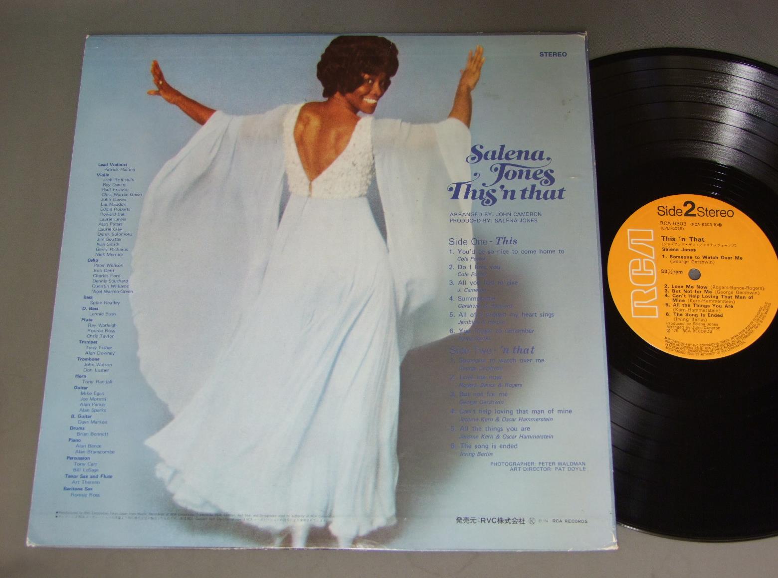 SALENA JONES/THIS `N THAT RCA6303 製造国:日本盤 / Media:LP外観:EX盤の状態:EX+ 価格(税込):¥1,100(売約済) 送料 7inch:定形外郵便 360円~LP:定形外郵便 660円~送料は、注文の最終画面で確認頂けます。 > > SALENA JONES/THIS `N THAT 外観 (EX)特記事項:上下ヘリスレやや有り。裏ジャケによごれが少し。外観EXの共通説明:ダメージが限定的。中古品としては保存状態がよい方。シミ、ヨゴレ、スレ 少し~軽度。 盤の状態 (EX+)特記事項:薄いスリキズ・スレ少し。一見してきれいな状態です。盤EX+の共通説明:盤面の極薄いスリキズ、スレ少し程度 音に出そうなものは無いように見える(極軽微なソフトティック音は除く)。 Tweet それぞれの画像をクリックすると、大きい写真が見られます こちらの商品もお勧めです 1,650円 TATSUYA TAKAHASHI&TOKYO UNION ORCH.高橋達也と東京ユニオン / SWING ON SWINGスイング・オン・スイング 770円 JACQUES LOUSSIER TRIO - ROYAL PHIL. ORCH.ジャック・ルーシェ・トリオ - ロイヤル・フィルハーモニー管弦楽団 / BACH - BRANDENBURG NO5バッハ - ブランデンブルグ協奏曲第5番 770円 MATT DENNIS & RED NORVOマット・デニス & レッド・ノーヴォ / SOME OF MY FAVORITESサム・オブ・マイ・フェイバリッツ 770円 ENSEMBLE NIPPONIA日本音楽集団 / WORKS OF KATSUTOSHI NAGASAWA (HOSHUN)長澤勝俊作品集萌春 1,210円 EUGEN CICEROオイゲン・キケロ・トリオ / ROKOKO-JAZZロココ・ジャズ 1,650円 ALBERT AYLERアルバート・アイラー / VOLUME 1ラスト・レコーディング VOL1 990円 BILL HOLMANビル・ホルマン / BIG BAND IN A JAZZ ORBITビッグ・バンド・イン・ア・ジャズ・オービット 1,320円 HERBIE MANNハービー・マン楽団 / ST.THOMAS 60s ISSUEセント・トーマス ペラジャケ