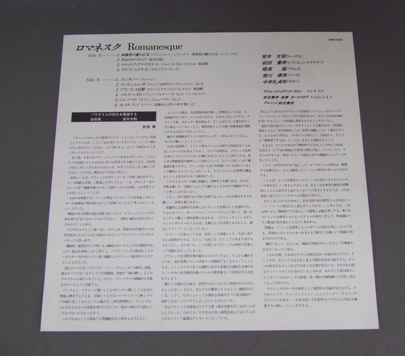 FUMIAKI MIYAMOTO宮本文昭/ROMANESQUEロマネスク 28AC2102 製造国:日本盤 / Media:LP外観:EX盤の状態:EX 価格(税込):¥1,320(売約済) 送料 7inch:定形外郵便 360円~LP:定形外郵便 660円~送料は、注文の最終画面で確認頂けます。 > > FUMIAKI MIYAMOTO/ROMANESQUE 外観 (EX)特記事項:裏ジャケ左下隅に書き込み。外観EXの共通説明:ダメージが限定的。中古品としては保存状態がよい方。シミ、ヨゴレ、スレ 少し~軽度。 盤の状態 (EX)特記事項:薄いスリキズ・スレ軽くある感じ。殆どが軽微なものの様子です。盤EXの共通説明:盤面のスリキズが薄いものが少し~軽度 音に出そうなものは無いように見える(軽微なソフトティック音は除く)。 Tweet それぞれの画像をクリックすると、大きい写真が見られます こちらの商品もお勧めです 990円 GRANADOSグラナドス / GRANADOS-GOYESCAS-ESCENAS ROMANTICASピアノ曲集 990円 RICHTERカール・リヒター / ORGAN RECITALトッカータとフーガ 1,320円 HOROWITZホロヴィッツ / PLAYS CHOPINショパン2 1,430円 YEPES - ALONSO - ORQUESTA SINFONICA R.T.V.ESPANOLAイエペス - アロンソ - スペイン放送交響楽団 / RODRIGO - CONCIERTO DE ARANJUEZ ロドリーゴ - アランフェス協奏曲 990円 RUBINSTEINルービンシュタイン / CHOPIN - IMPROMPTUS幻想即興曲 990円 LARROCHAラローチャ / GRANADOS/DANZAS ESPANOLASグラナドス/スペイン舞曲集 990円 GEORE MALCOLMジョージ・マルコム / BACH ITALLAN CONC.バッハ イタリア協奏曲 1,320円 MARIE-CLAIRE ALAINマリークレール・アラン / BACH - TOCCATA AND FUGUEバッハ - トッカータとフーガ
