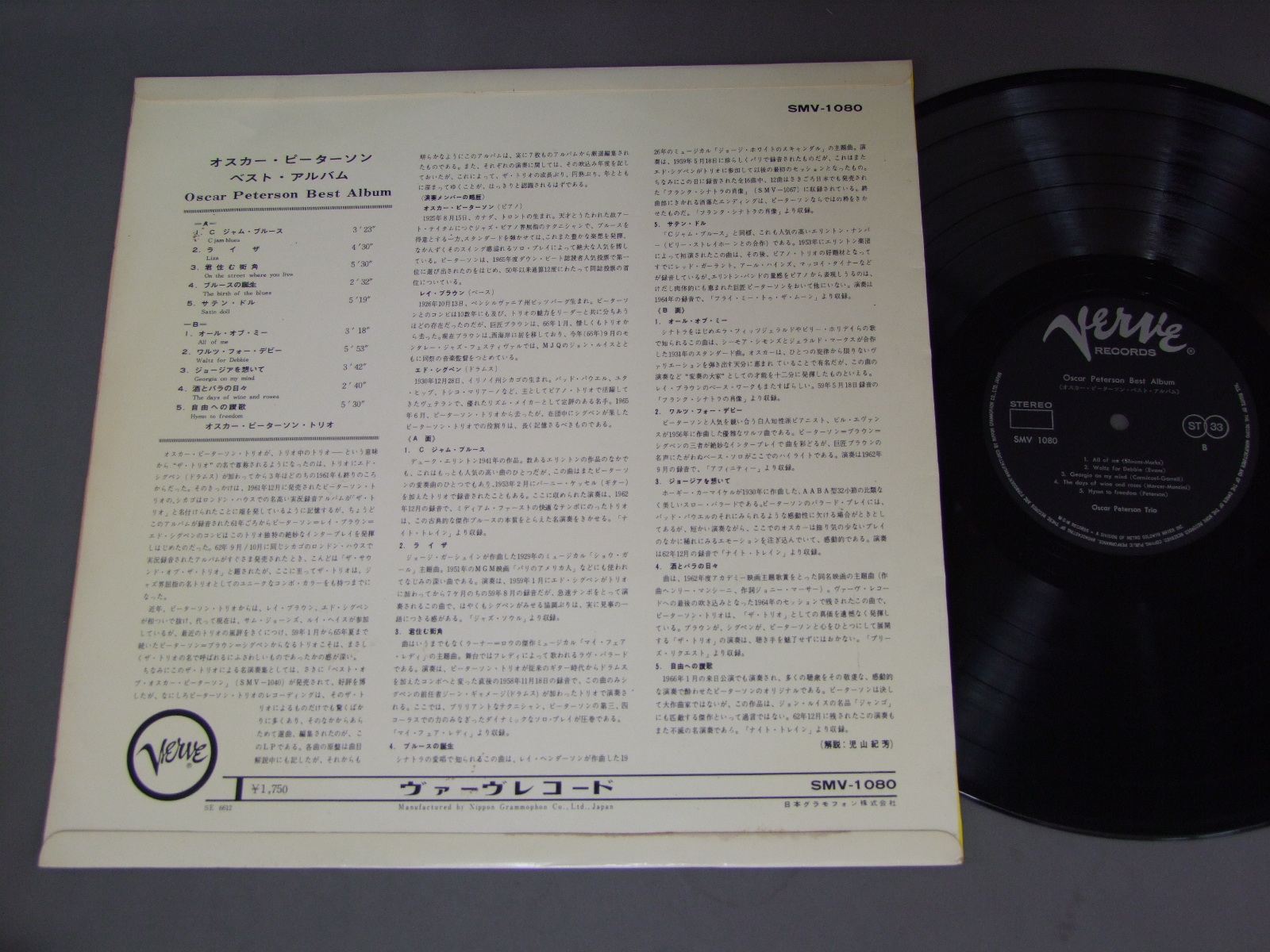 OSCAR PETERSON TRIO/BEST ALBUMペラジャケ SMV1080 製造国:日本盤 / Media:LP外観:EX盤の状態:EX 価格(税込):¥1,100(売約済) 送料 7inch:定形外郵便 360円~LP:定形外郵便 660円~送料は、注文の最終画面で確認頂けます。 > > OSCAR PETERSON TRIO/BEST ALBUM 外観 (EX)特記事項:特記なし。コンディションリストをご覧ください。外観EXの共通説明:ダメージが限定的。中古品としては保存状態がよい方。シミ、ヨゴレ、スレ 少し~軽度。 盤の状態 (EX)特記事項:薄いスリキズ・スレ軽くある感じ。殆どが軽微なものの様子です。盤EXの共通説明:盤面のスリキズが薄いものが少し~軽度 音に出そうなものは無いように見える(軽微なソフトティック音は除く)。 Tweet それぞれの画像をクリックすると、大きい写真が見られます こちらの商品もお勧めです 990円 HERBIE MANNハービー・マン / HERBIE MANN VOL12ハービー・マン VOL12 1,210円 RED NICHOLS & HIS FIVE PENNIESレッド・ニコルスとファイブ・ペニーズ / RED NICHOLS STORYレッド・ニコルス物語 990円 JAMES NEWTONジェームズ・ニュートン / DAYDREAMデイドリーム 770円 AIRTOアイアート・モレイラ / FREEフリー 1,320円 MONTY ALEXANDER TRIOモンティ・アレキサンダー / MONTREUX ALEXANDERアット・モントルー 990円 SHOJI SUZUKI & HIS RHYTHM ACES鈴木章治とリズム・エース / SUZUKAKE NO MICHI新・鈴懸の径 990円 MODERN JAZZ QUARTETモダン・ジャズ・クワルテット / IN MEMORIAMイン・メモリアル 440円 GARY BURTON - SONNY ROLLINS - CLARK TERRYG.バートン - S.ロリンズ - C.テリー / 3 IN JAZZスリー・イン・ジャズ