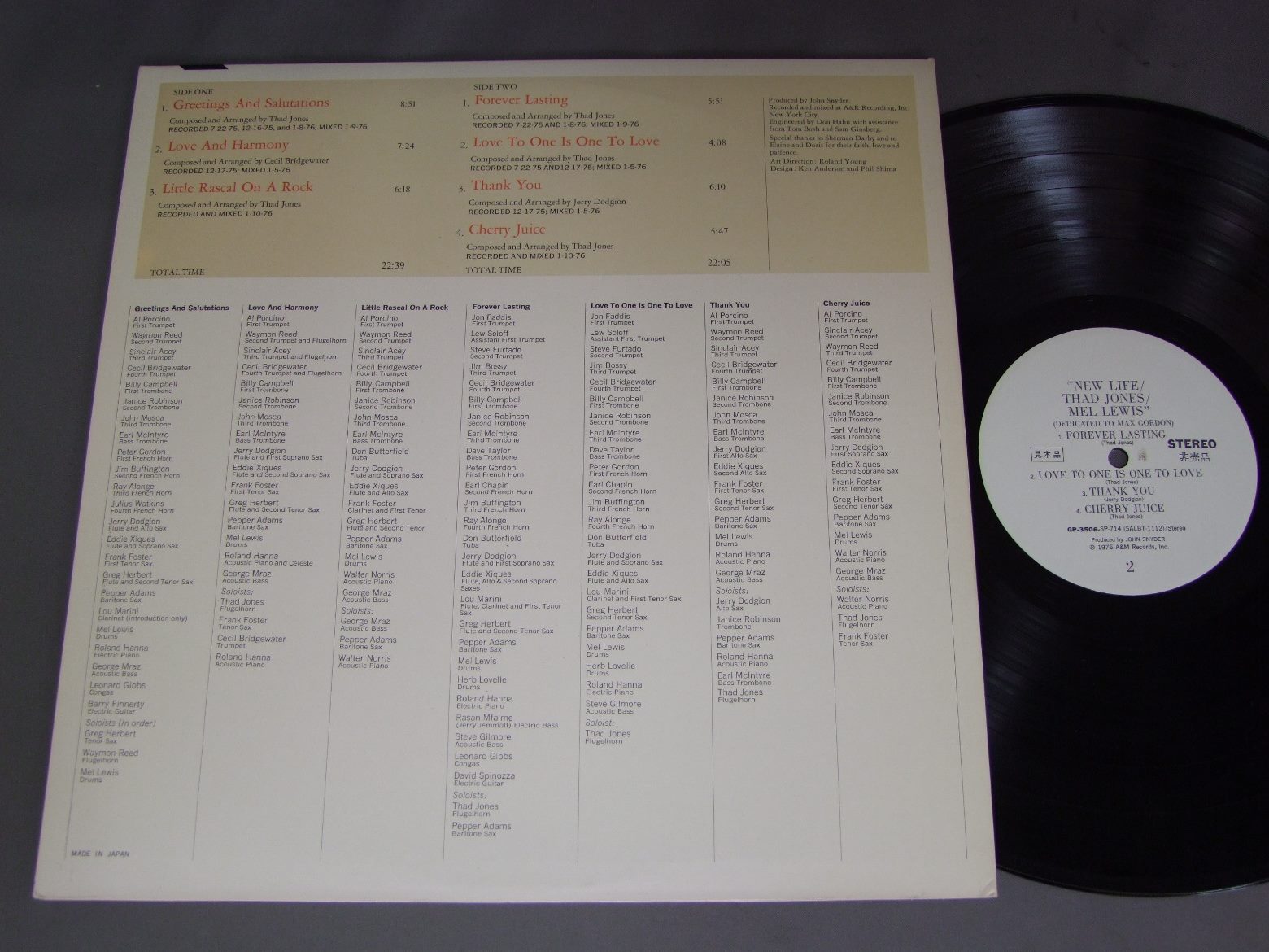 THAD JONES & MEL LEWIS/NEW LIFE(DEDICATED TO MAX GORDON)ニューライフ マックス・ゴードンに捧ぐ GP3506 製造国:日本盤 / Media:LP外観:EX盤の状態:EX+ 価格(税込):¥1,320(売約済) 送料 7inch:定形外郵便 360円~LP:定形外郵便 660円~送料は、注文の最終画面で確認頂けます。 > > THAD JONES & MEL LEWIS/NEW LIFE(DEDICATED TO MAX GORDON) 外観 (EX)特記事項:特記なし。外観EXの共通説明:ダメージが限定的。中古品としては保存状態がよい方。シミ、ヨゴレ、スレ 少し~軽度。 盤の状態 (EX+)特記事項:極薄いスリキズ・スレ少し。一見してきれいな状態です。盤EX+の共通説明:盤面の極薄いスリキズ、スレ少し程度 音に出そうなものは無いように見える(極軽微なソフトティック音は除く)。 その他:白見本盤 Tweet それぞれの画像をクリックすると、大きい写真が見られます こちらの商品もお勧めです 880円 SADAO WATANABE渡辺貞夫 / MY DEAR LIFEマイ・ディア・ライフ 2,640円 EDDIE CONDON ALL STARSエディ・コンドン・オール・スターズ / EDDIE CONDON ALL STARS 1944 5LP BOX SETエディ・コンドン・オール・スターズ1944 5枚組 662円 FRANCOIS GLORIEUXグロリュー / PLAYS THE BEATLESビートルズを弾く 1,320円 DOLLAR BRANDダラー・ブランド / AFRICAN PIANOアフリカン・ピアノ 1,210円 BUCK CLAYTONバック・クレイトン / PASSORT TO PARADISEスポート・トゥ・パラダイス 1,320円 JOE NEWMAN SEPTETジョー・ニューマン / MIDGETSミジェット 990円 MODERN JAZZ QUARTETモダン・ジャズ・カルテット / TOGETHER AGAINトゥゲザー・アゲイン 1,650円 MASARU IMADA今田勝 / MINT BREEZEミント・ブリーズ