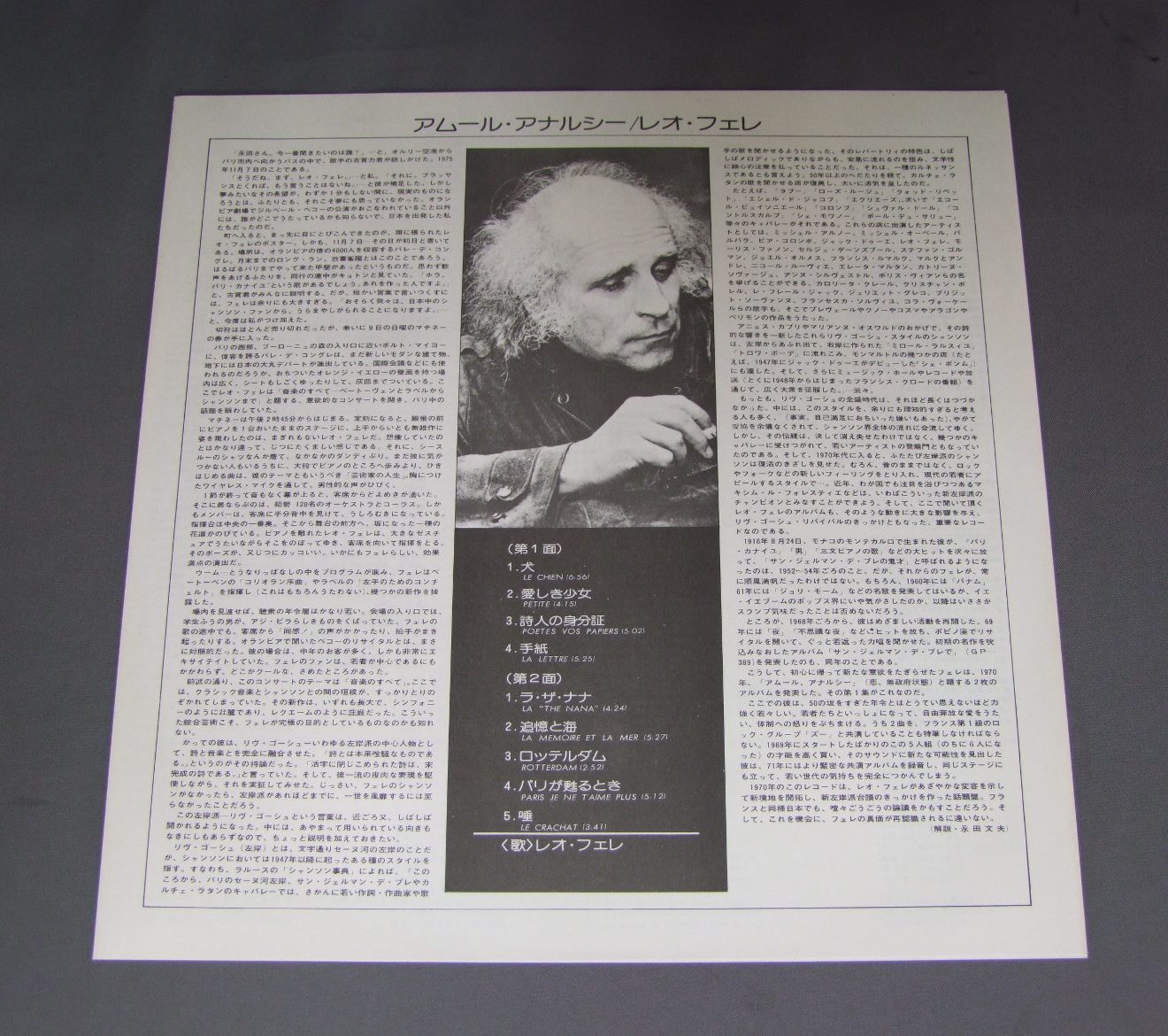 LEO FERREレオ・フェレ/AMOUR.ANARCHIEアムール・アナルシー GP406 製造国:日本盤 / Media:LP外観:EX盤の状態:EX+ 価格(税込):¥3,829(売約済) 送料 7inch:定形外郵便 360円~LP:定形外郵便 660円~送料は、注文の最終画面で確認頂けます。 > > LEO FERRE/AMOUR.ANARCHIE 外観 (EX)特記事項:特記なし。外観EXの共通説明:ダメージが限定的。中古品としては保存状態がよい方。シミ、ヨゴレ、スレ 少し~軽度。 盤の状態 (EX+)特記事項:極薄いスリキズ・スレ少し。一見してきれいな状態です。盤EX+の共通説明:盤面の極薄いスリキズ、スレ少し程度 音に出そうなものは無いように見える(極軽微なソフトティック音は除く)。 その他:白見本盤 Tweet それぞれの画像をクリックすると、大きい写真が見られます こちらの商品もお勧めです 660円 RODNEY CROWELLロドニー・クロウェル / BUT WHAT WILL THE NEIGHBORS THINKアメリカン・ヒーロー 1,210円 WILLIE NELSONウィリー・ネルソン / PARTNERSサムシング 770円 HUBERT KAHヒューバート・カー / ANGEL 07エンジェル07 550円 ERIC CARMENエリック・カルメン / BEST OF ERIC CARMENベスト・オブ・エリック・カルメン 1,210円 ART GARFUNKELアート・ガーファンクル / ANGEL CLAREエンジェル・クレア 880円 PAUL RODGERSポール・ロジャース / CUT LOOSEカット・ルース 440円 MAX CARLマックス・カール / CIRCLEサークル 770円 YVES MONTANDイヴ・モンタン / LE PARIS DE… YVES MONTANDモンタン. パリの心を歌う