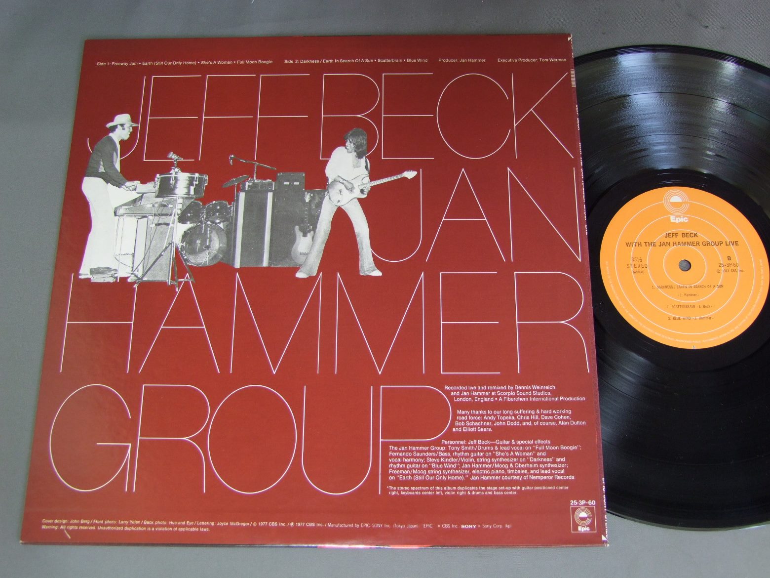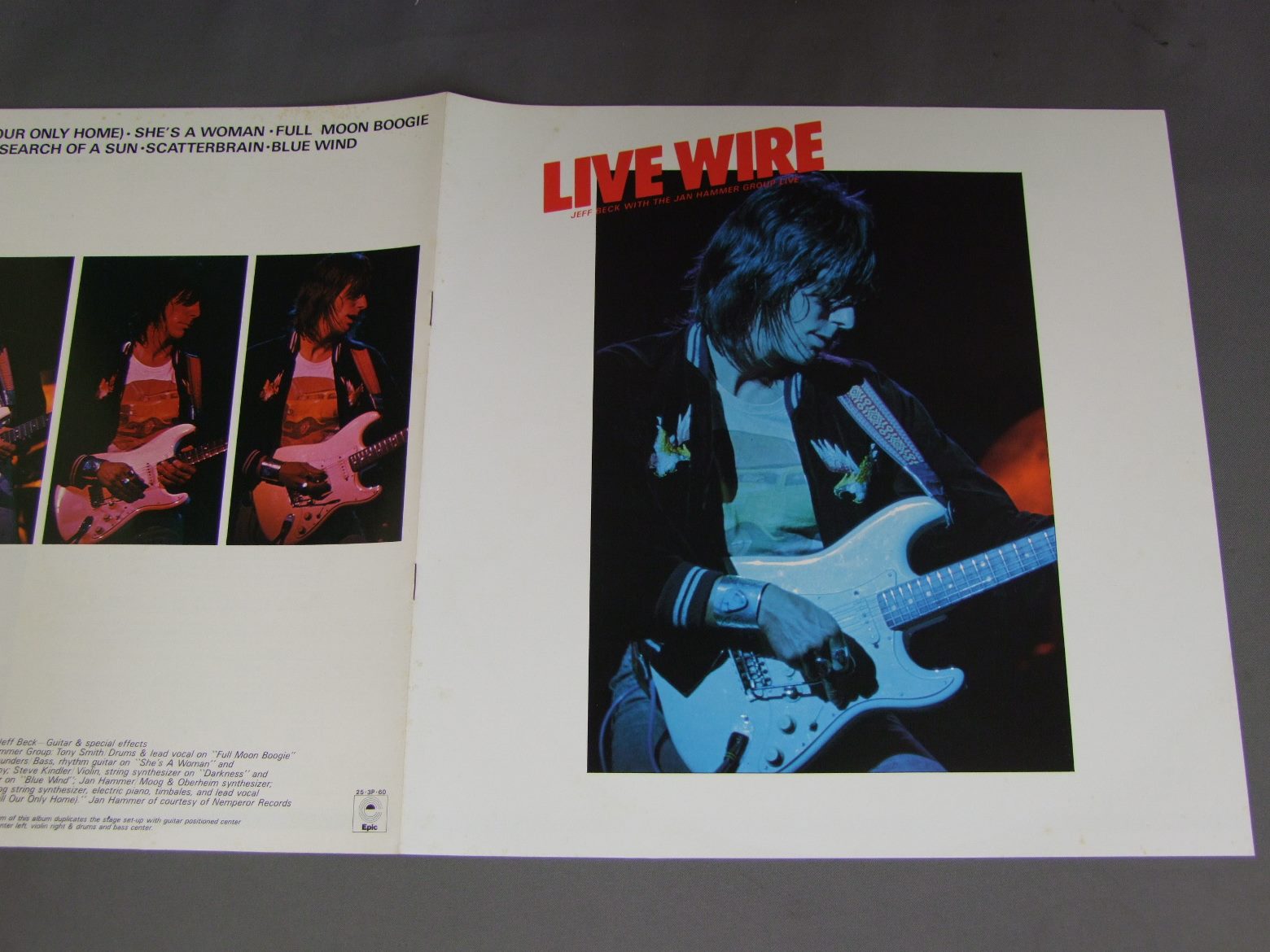 JEFF BECK/WITH THE JAN HAMMER GROUP LIVEライブ・ワイヤー 25 3P60 製造国:日本盤 / Media:LP外観:EX盤の状態:EX+ 価格(税込):¥1,100(売約済) 送料 7inch:定形外郵便 360円~LP:定形外郵便 660円~送料は、注文の最終画面で確認頂けます。 > > JEFF BECK/WITH THE JAN HAMMER GROUP LIVE 外観 (EX)特記事項:ブックレット表裏表紙にシミ有。外観EXの共通説明:ダメージが限定的。中古品としては保存状態がよい方。シミ、ヨゴレ、スレ 少し~軽度。 盤の状態 (EX+)特記事項:極薄いスリキズ・スレ少し。一見してきれいな状態です。盤EX+の共通説明:盤面の極薄いスリキズ、スレ少し程度 音に出そうなものは無いように見える(極軽微なソフトティック音は除く)。 Tweet それぞれの画像をクリックすると、大きい写真が見られます こちらの商品もお勧めです 440円 JEFF BECK / FLASH 1,650円 JEFF BECKジェフ・ベック / WIREDワイヤード
