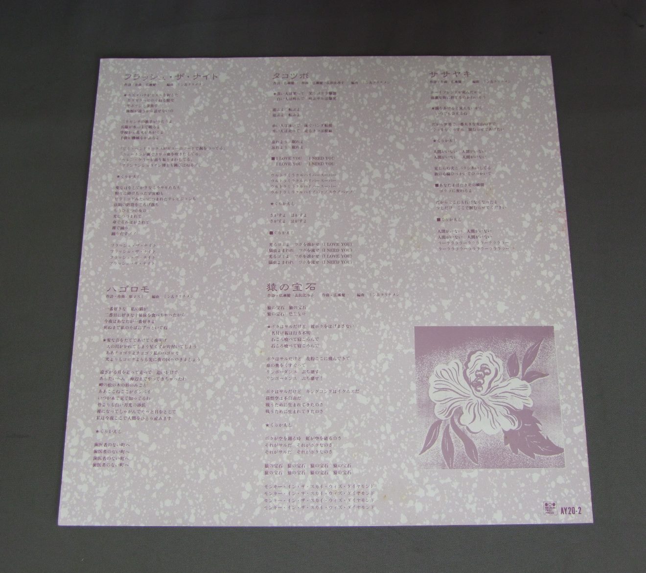 MIN & KLINA-MEN泯 比沙子/MONKEY IN THE SKY WITH DAIMOND猿の宝石 ミン&クリナメン AY20 2 製造国:日本盤 / Media:LP外観:EX+盤の状態:EX+帯:EX+ 価格(税込):¥1,320(売約済) 送料 7inch:定形外郵便 360円~LP:定形外郵便 660円~送料は、注文の最終画面で確認頂けます。 > > MIN & KLINA-MEN/MONKEY IN THE SKY WITH DAIMOND 外観 (EX+)特記事項:特記なし。外観EX+の共通説明:中古としては美品、一見してきれいでダメージが軽微。シミ、ヨゴレ、スレ有っても僅か~少し。 盤の状態 (EX+)特記事項:極薄いスリキズ・スレ少し。一見してきれいな状態です。盤EX+の共通説明:盤面の極薄いスリキズ、スレ少し程度 音に出そうなものは無いように見える(極軽微なソフトティック音は除く)。 帯の状態 (EX+):特記なし。 Tweet それぞれの画像をクリックすると、大きい写真が見られます こちらの商品もお勧めです 715円 TAKURO YOSHIDA吉田拓郎 / OHINARU HITO大いなる人 990円 MOTOHARU SANO佐野元春 / VISITORS 1,210円 MIYUKI NAKAJIMA中島みゆき / OKAERINASAIおかえりなさい 1,320円 FUKINOTOふきのとう / SAIJIKI歳時記 770円 KUMIKO YAMASHITA山下久美子 / AME NO H IHA IENIITE雨の日は家にいて 1,210円 TAKURO YOSHIDAよしだたくろう / ON STAGEオン・ステージ - ともだち 1,650円 MOMOE YAMAGUCHI山口百恵 / MOBIUS`S GAMEメビウス・ゲーム 1,320円 ICHIRO FURUTACHI古舘伊知郎 / DAIKAGEKI大過激