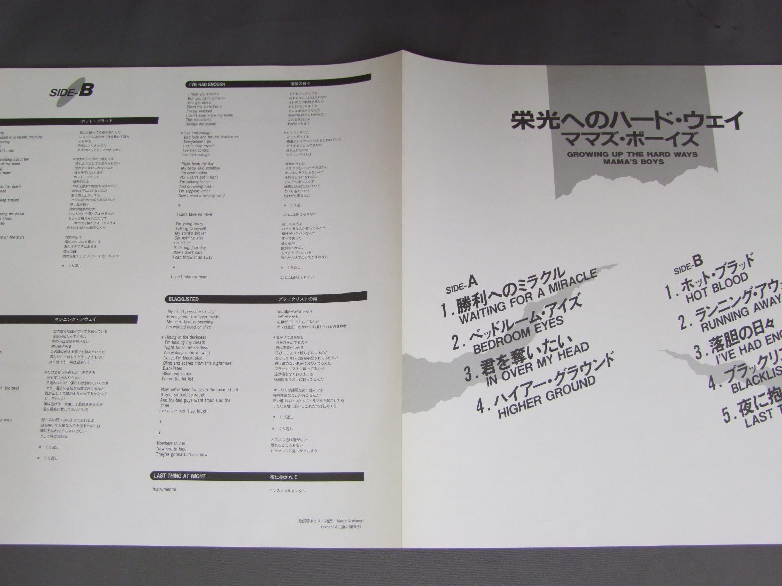 MAMA`S BOYSママズ・ボーイズ/GROWING UP THE HARD WAY栄光へのハード・ウェイ ALI28051 製造国:日本盤 / Media:LP外観:EX盤の状態:EX+帯:EX- 価格(税込):¥1,650(売約済) 送料 7inch:定形外郵便 360円~LP:定形外郵便 660円~送料は、注文の最終画面で確認頂けます。 > > MAMA`S BOYS/GROWING UP THE HARD WAY 外観 (EX)特記事項:特記なし。外観EXの共通説明:ダメージが限定的。中古品としては保存状態がよい方。シミ、ヨゴレ、スレ 少し~軽度。 盤の状態 (EX+)特記事項:極薄いスリキズ・スレ少し。一見してきれいな状態です。盤EX+の共通説明:盤面の極薄いスリキズ、スレ少し程度 音に出そうなものは無いように見える(極軽微なソフトティック音は除く)。 帯の状態 (EX-):裏側の折り返しに破け。 Tweet それぞれの画像をクリックすると、大きい写真が見られます こちらの商品もお勧めです 770円 IAN GILLAN BANDイアン・ギラン・バンド / LIVE AT THE BUDOKAN VOL2ライブ・イン・ジャパン VOL2 660円 ANGELエンジェル / ANGEL 1,320円 MICHAEL SCHENKER GROUPマイケル・シェンカー・グループ / 1st ALBUM神(帰ってきたフライング・アロウ 1,210円 TYGERS OF PAN TANGタイガース・オブ・パンタン / CAGE危険なパラダイス 1,210円 NIGHT RANGERナイト・レンジャー / MIDNIGHT MADNESSナイト・レンジャー 770円 NIGHT RANGERナイト・レンジャー / MIDNIGHT MADNESSミッドナイト・マッドネス 770円 MICHAEL SCHENKER GROUPマイケル・シェンカー・グループ / CRY FOR THE NATIONSハーフ・ライブ 770円 MONEYマネー / FIRST INVESTMENT誘惑の掟