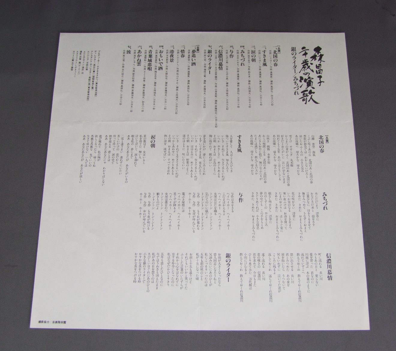 MASAKO MORI森昌子/森昌子二十歳の演歌 銀のライター/みちづれ KC9510 製造国:日本盤 / Media:LP外観:EX盤の状態:EX帯:EX 価格(税込):¥1,100(売約済) 送料 7inch:定形外郵便 360円~LP:定形外郵便 660円~送料は、注文の最終画面で確認頂けます。 > > MASAKO MORI/ 外観 (EX)特記事項:歌詞カードに折れ。外観EXの共通説明:ダメージが限定的。中古品としては保存状態がよい方。シミ、ヨゴレ、スレ 少し~軽度。 盤の状態 (EX)特記事項:薄いスリキズ・スレ軽くある感じ。軽微なものの様子です。盤EXの共通説明:盤面のスリキズが薄いものが少し~軽度 音に出そうなものは無いように見える(軽微なソフトティック音は除く)。 帯の状態 (EX):特記なし。 Tweet それぞれの画像をクリックすると、大きい写真が見られます こちらの商品もお勧めです 770円 NOA HORIGUCHI堀ロノア / SHOKAN-BAKO書簡箱 1,210円 MACHIKO WATANABE渡辺真知子 / MEMORIESメモリ−ズ 660円 MAYUMI ITSUWA五輪真弓 / L`ETRANGERえとらんぜ 770円 YUMING松任谷由実 / RINCARNATIONリ・インカーネイション 770円 HIROMI OHTA大田裕美 / 12 PAGES POETRY12ページの詩集 990円 MOTOHARU SANO佐野元春 / VISITORS 880円 MIDORI KINOUCHI木之内みどり / ORIGINAL BEST COLLECTIONオリジナル・ベスト・コレクション 770円 KEIKO MARUYAMA丸山圭子 / HARU-SHIGURE春しぐれ