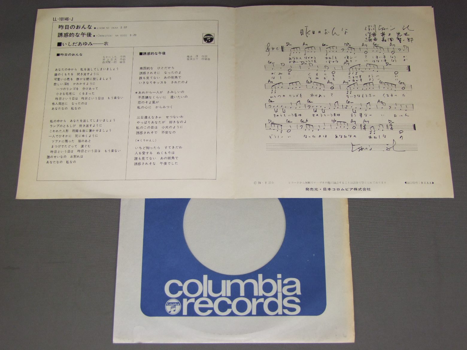 AYUMI ISHIDAいしだあゆみ/KINOH NO ONNA昨日のおんな LL10146J 製造国:日本盤 / Media:7inch外観:EX盤の状態:EX+ 価格(税込):¥550(売約済) 送料 7inch:定形外郵便 360円~LP:定形外郵便 660円~送料は、注文の最終画面で確認頂けます。 > > AYUMI ISHIDA/KINOH NO ONNA 外観 (EX)特記事項:見開きに多少日焼け感軽有り。外観EXの共通説明:ダメージが限定的。中古品としては保存状態がよい方。シミ、ヨゴレ、スレ 少し~軽度。 盤の状態 (EX+)特記事項:極薄いスリキズ・スレ少し。一見してきれいな状態です。盤EX+の共通説明:盤面の極薄いスリキズ、スレ少し程度 音に出そうなものは無いように見える(極軽微なソフトティック音は除く)。 Tweet それぞれの画像をクリックすると、大きい写真が見られます こちらの商品もお勧めです 550円 CHAGE & ASUKAチャゲ&飛鳥 / 4th ALBUM 21 CENTURY21世紀 770円 TULIPチューリップ / NEW TUNE 990円 TOKYO KID BROTHERS東京キッドブラザース / 遠い国のポルカ -君が人生の時を. 生きよ- 1,320円 YASUHA泰葉 / RESERVEDリザーブド 1,320円 FUKINOTOふきのとう / SAIJIKI歳時記 1,210円 PEDRO & CAPRICIOUSペドロ&カプリシャス / お気に召すまま 1,210円 KATSUYA KOBAYASHI & NUMBER ONE BANDナンバーワン・バンド / 1st ALBUMもも 880円 YOUSUI INOUE井上陽水 / EVERY NIGHT